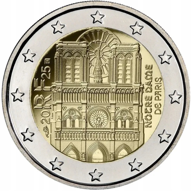 Франція 2 євро 2025 - Собор Нотр-Дам
