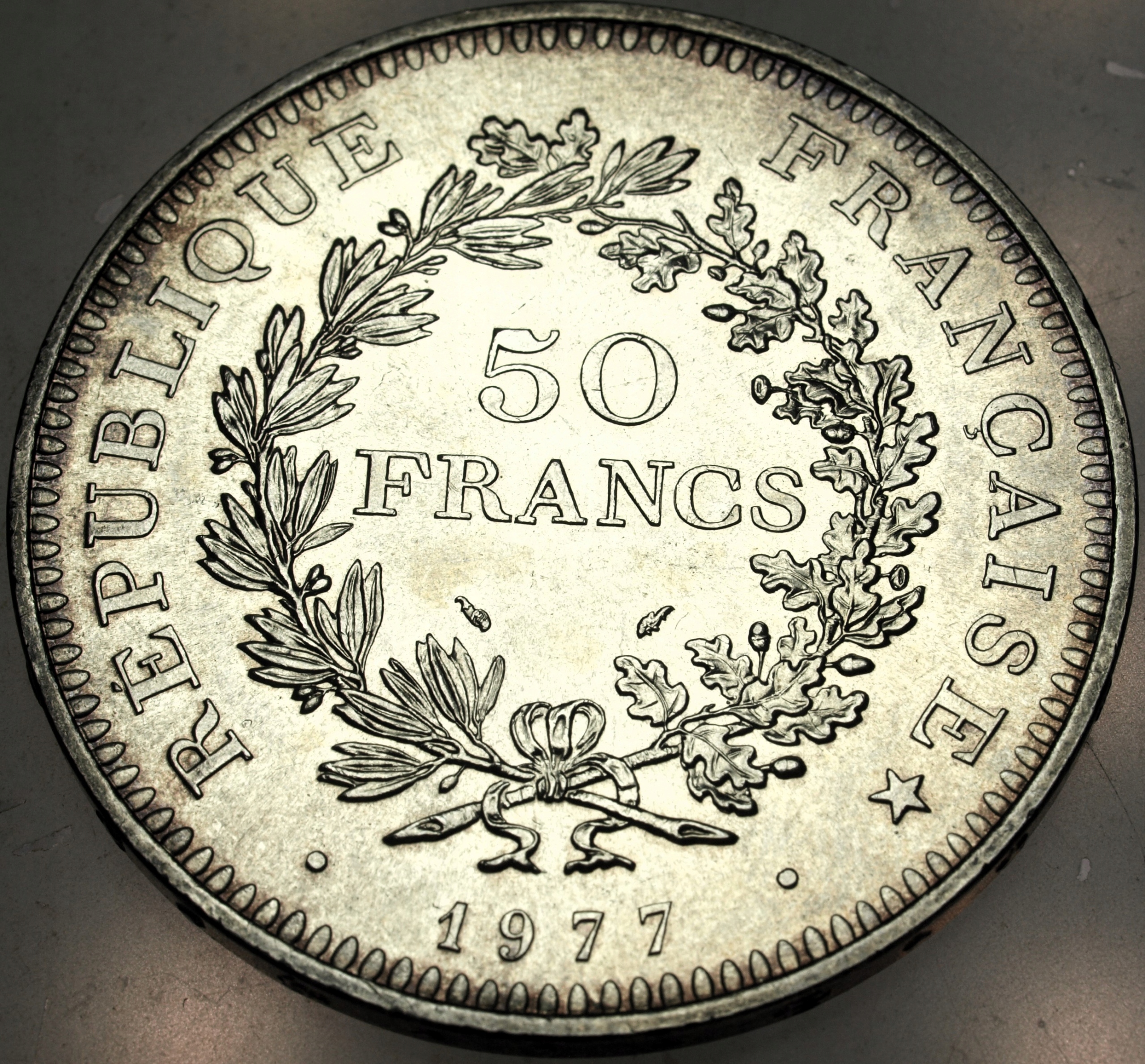 France 50 Franks Francs 1977 Hercules Silver. Оригинал Проверьте другие аукционы - Соберите редкие значения с Numismrato!