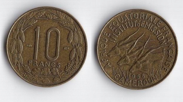 FRANCUSKA AFRYKA RÓWNIKOWA I KAMERUN 1958 10 FRANCS