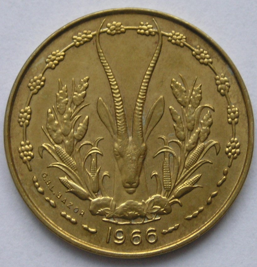 Francuska Afryka Zachodnia 10 franków 1966 - antylopa - stan 1/2