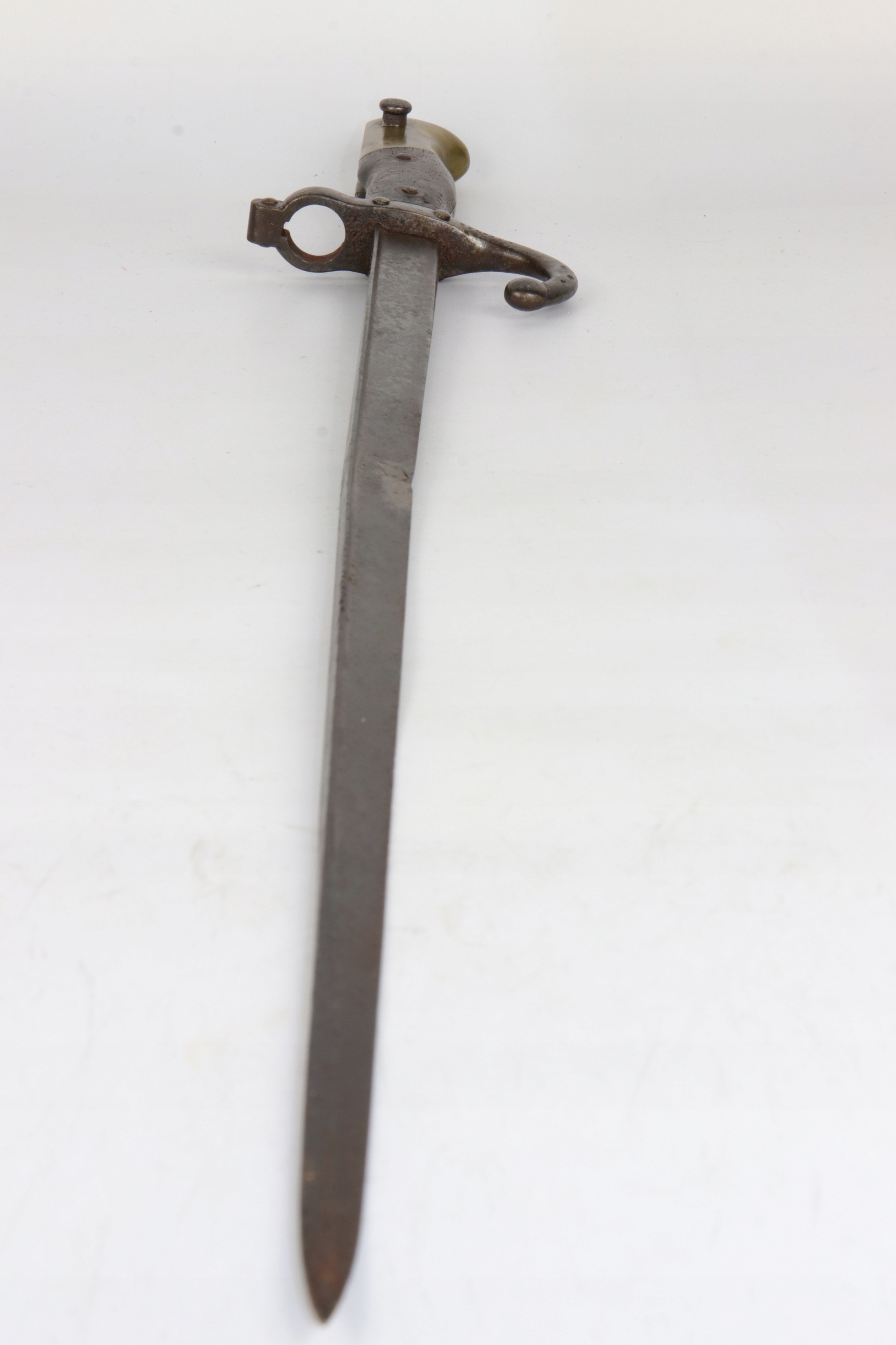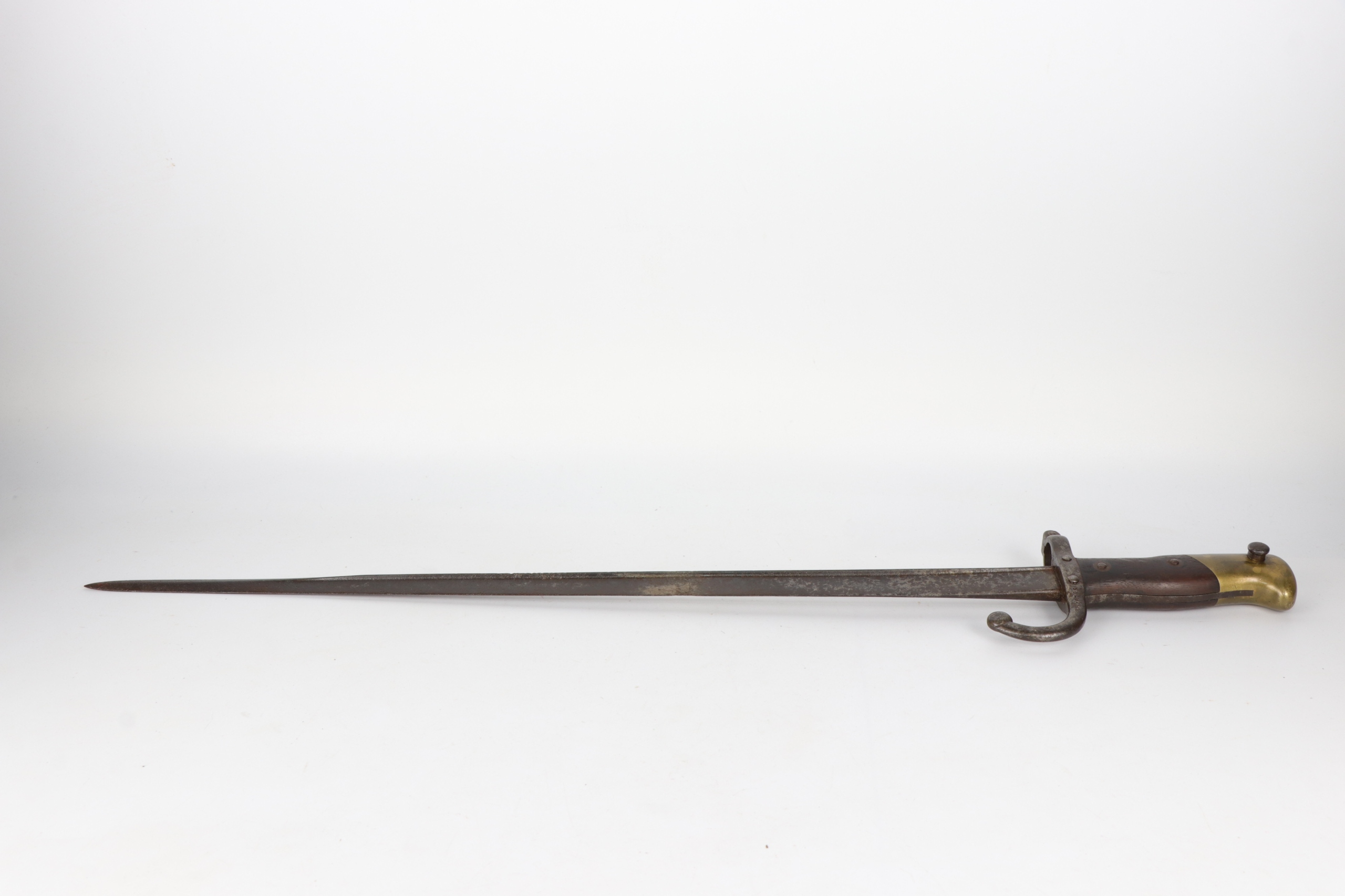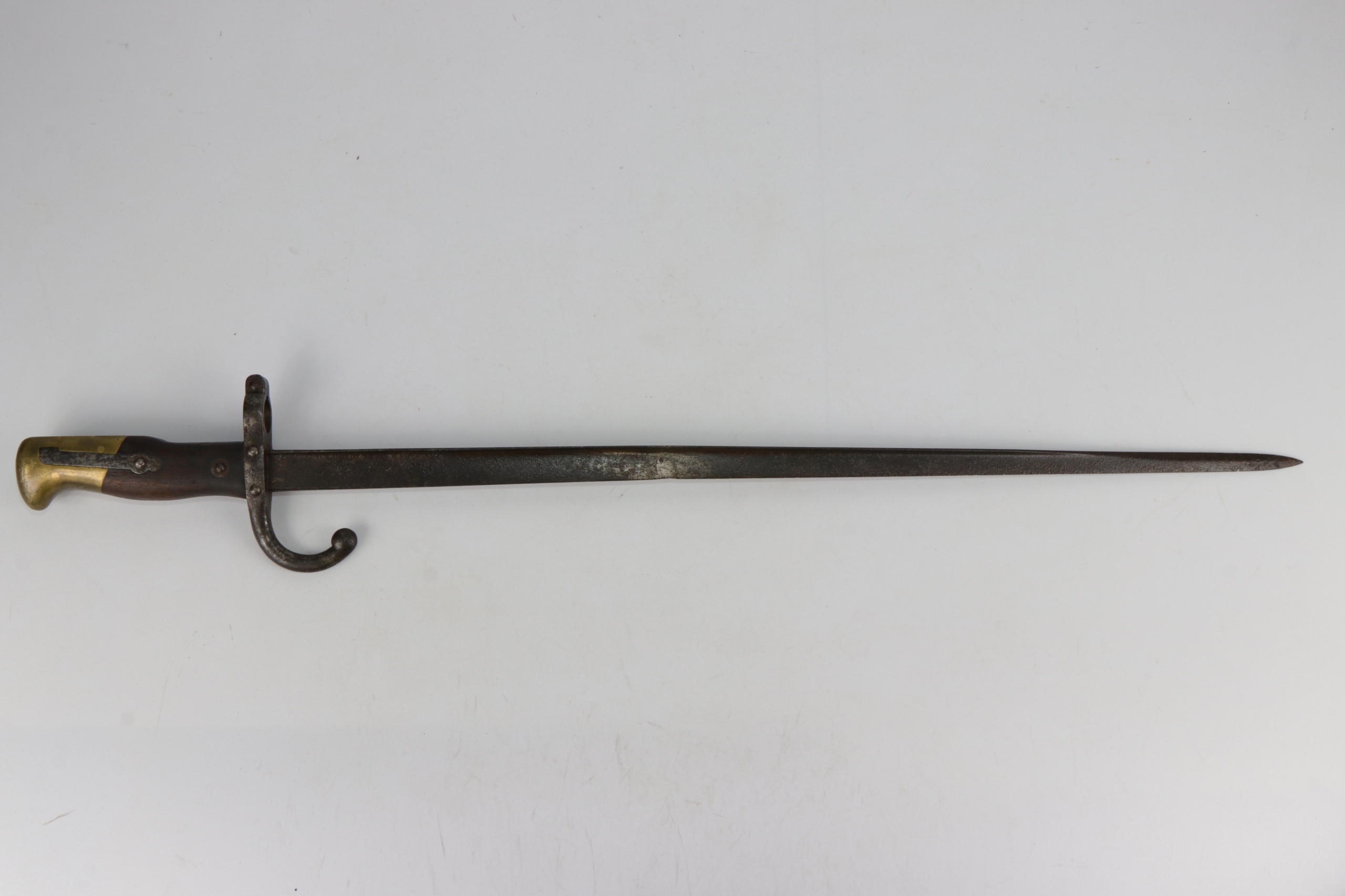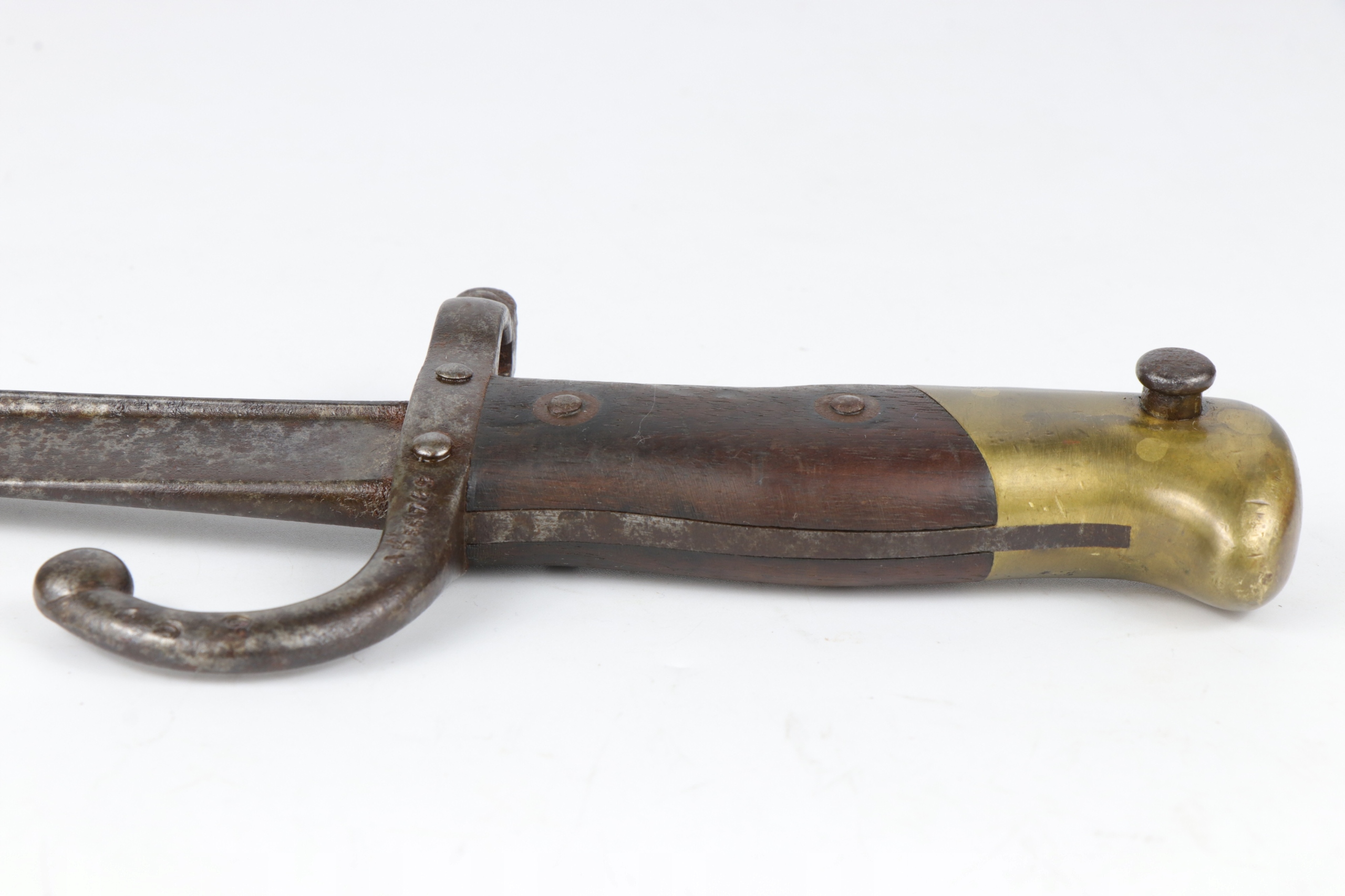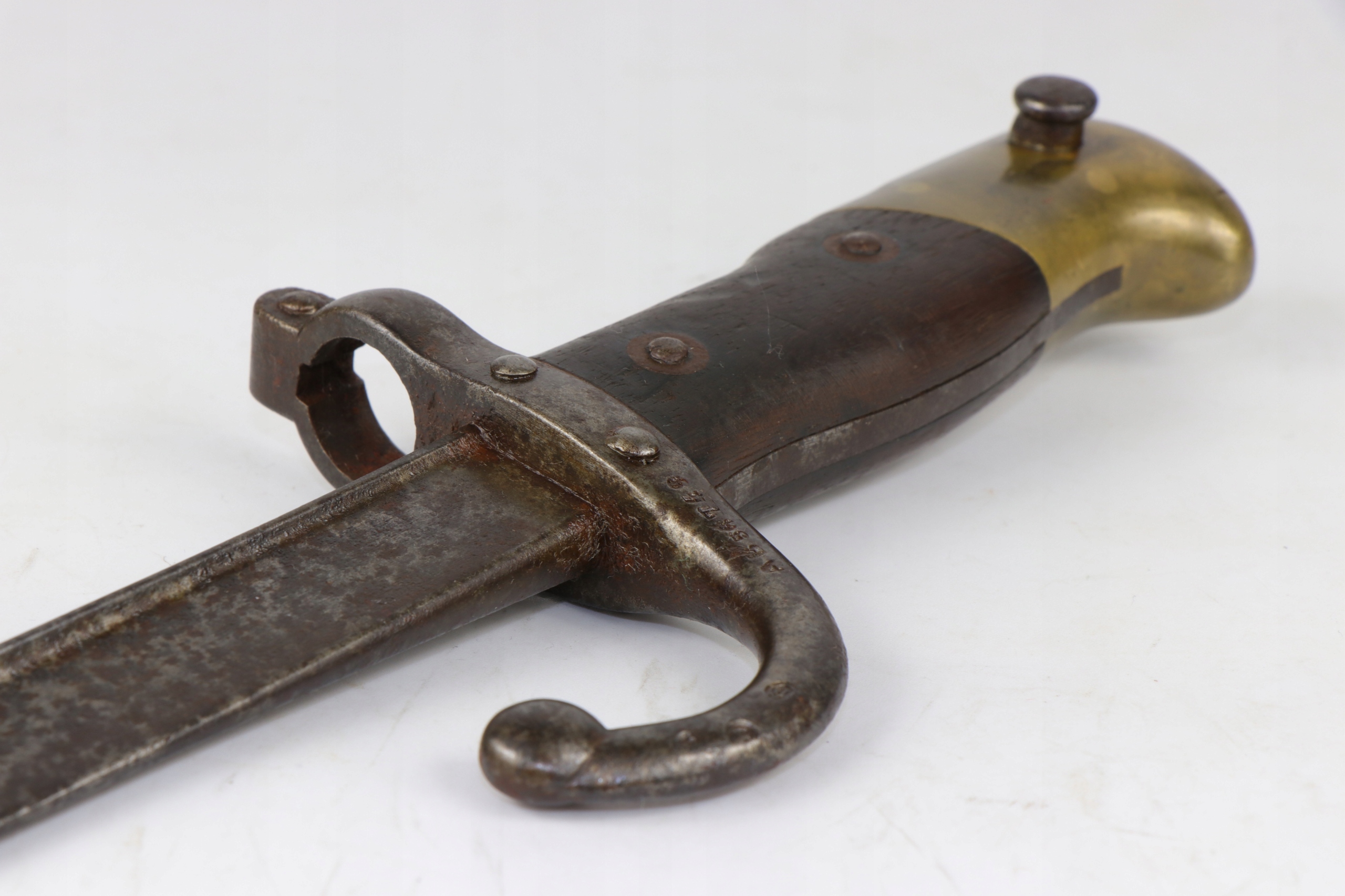 Французский штык образца. 1874 Трава. На тыльной стороне головки штыка надпись Париж и дата 1878, на цевье номер АВ56749, на штыке другие отметки (?)