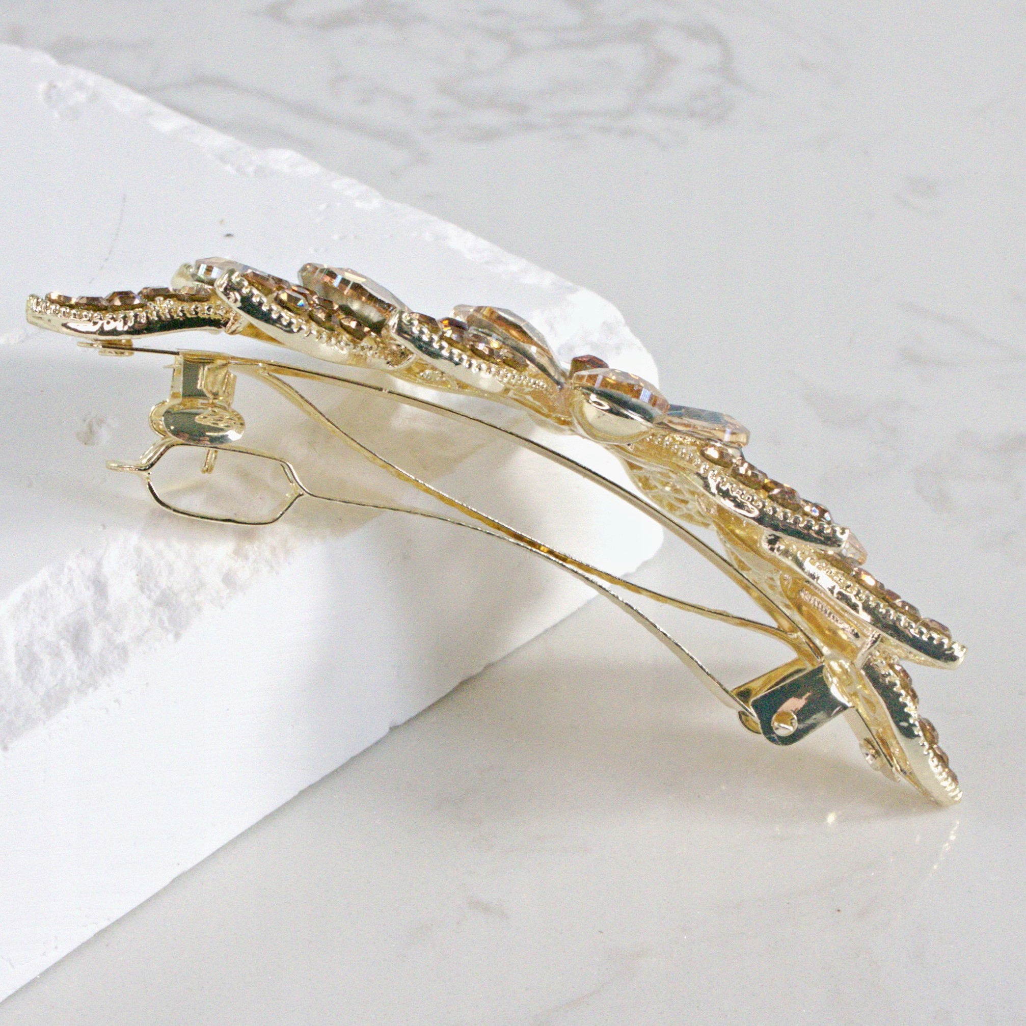 Французские застежки сконструированы таким образом, чтобы удерживать волосы в удобной и стильной укладке, придавая прическе элегантный вид. Их можно использовать для различных типов причесок, таких как пучки, косы или свободные прически.