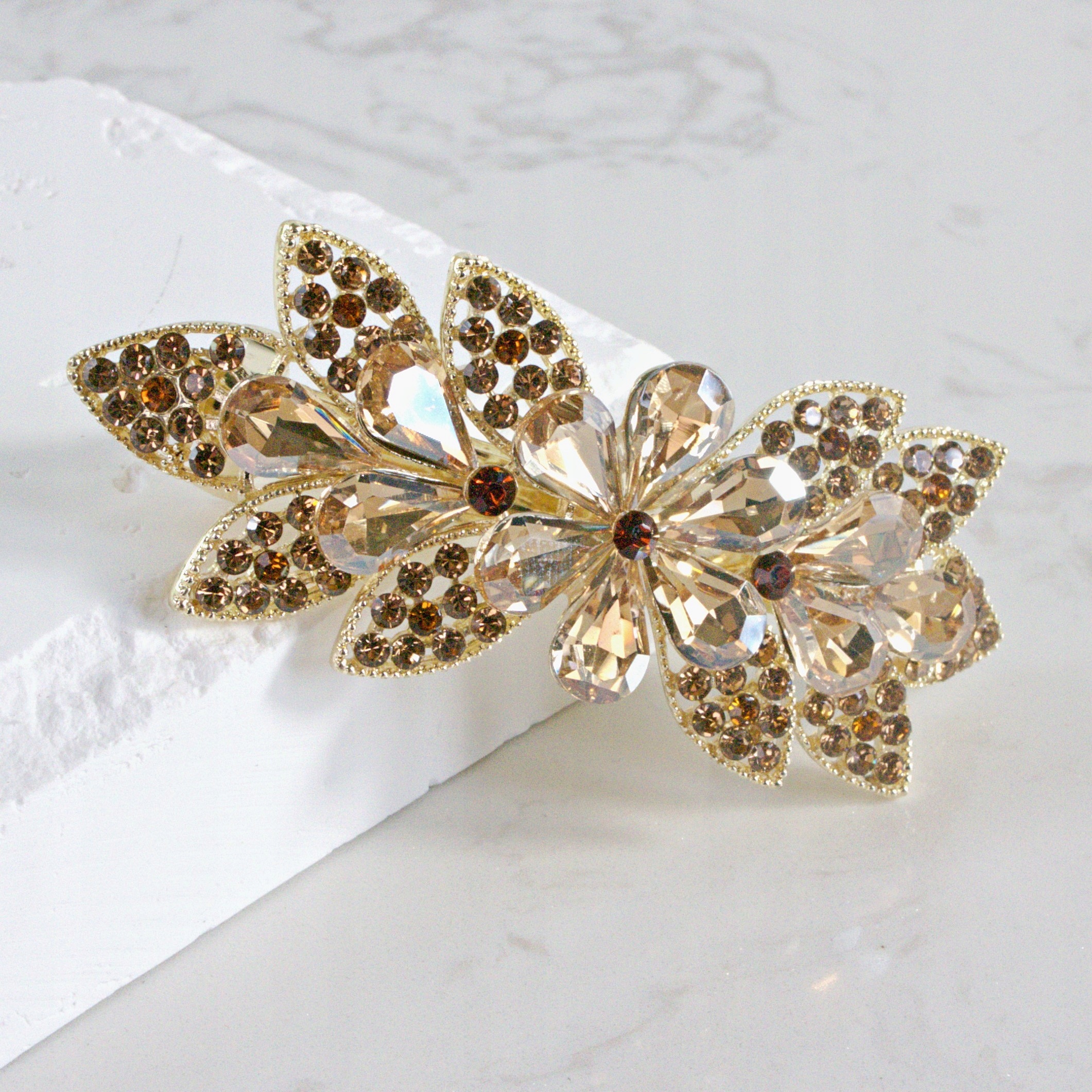 Французская пряжка КОРИЧНЕВЫЙ ЦВЕТОК С КОРИЧНЕВЫМИ КРИСТАЛЛАМИ Аксессуары Лолита