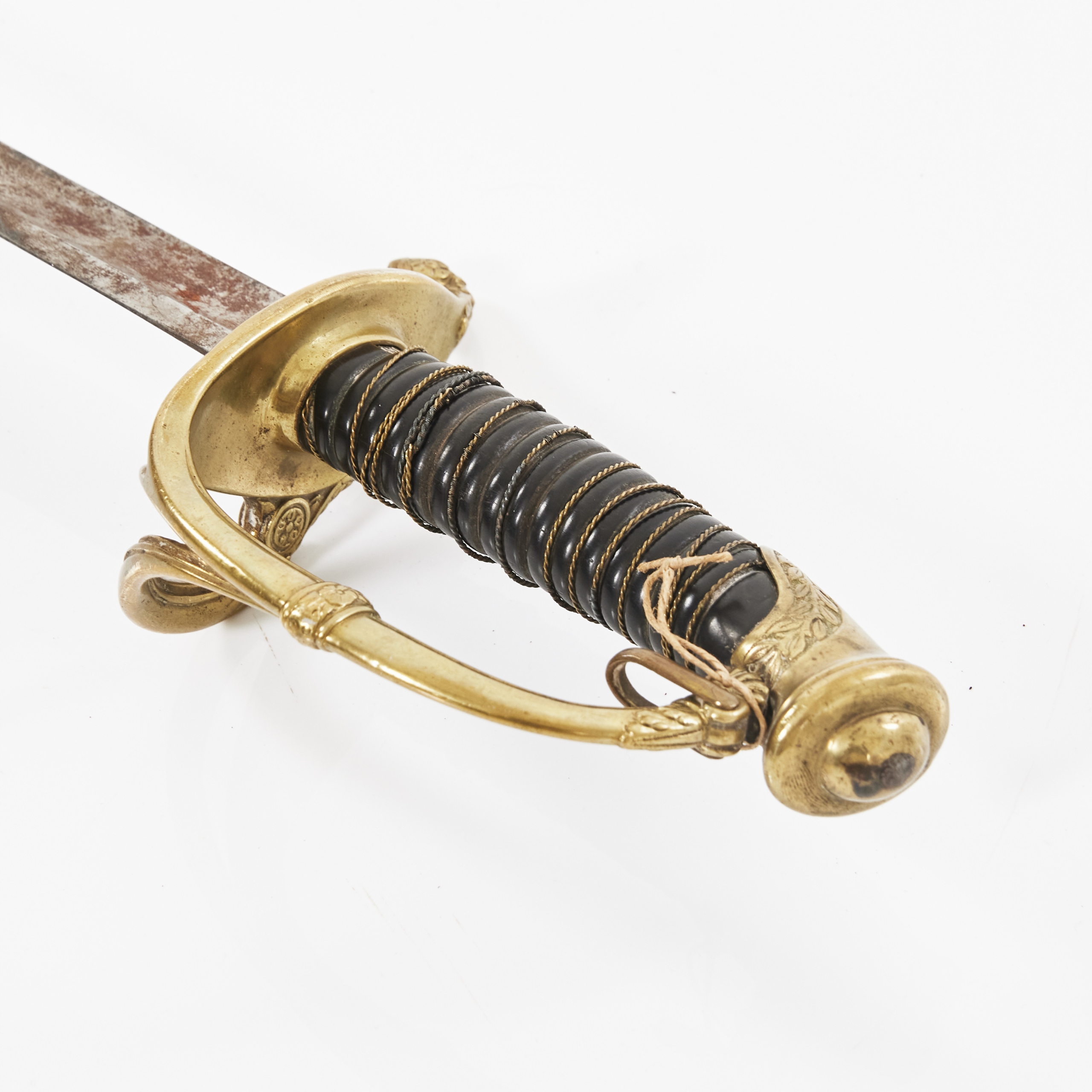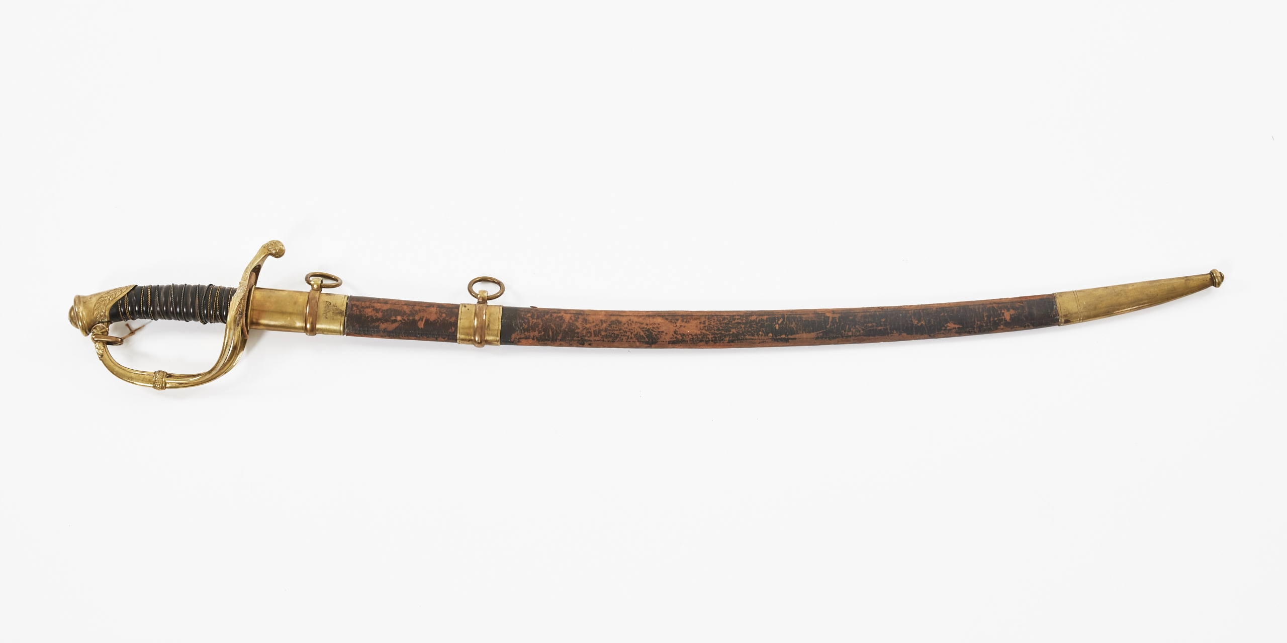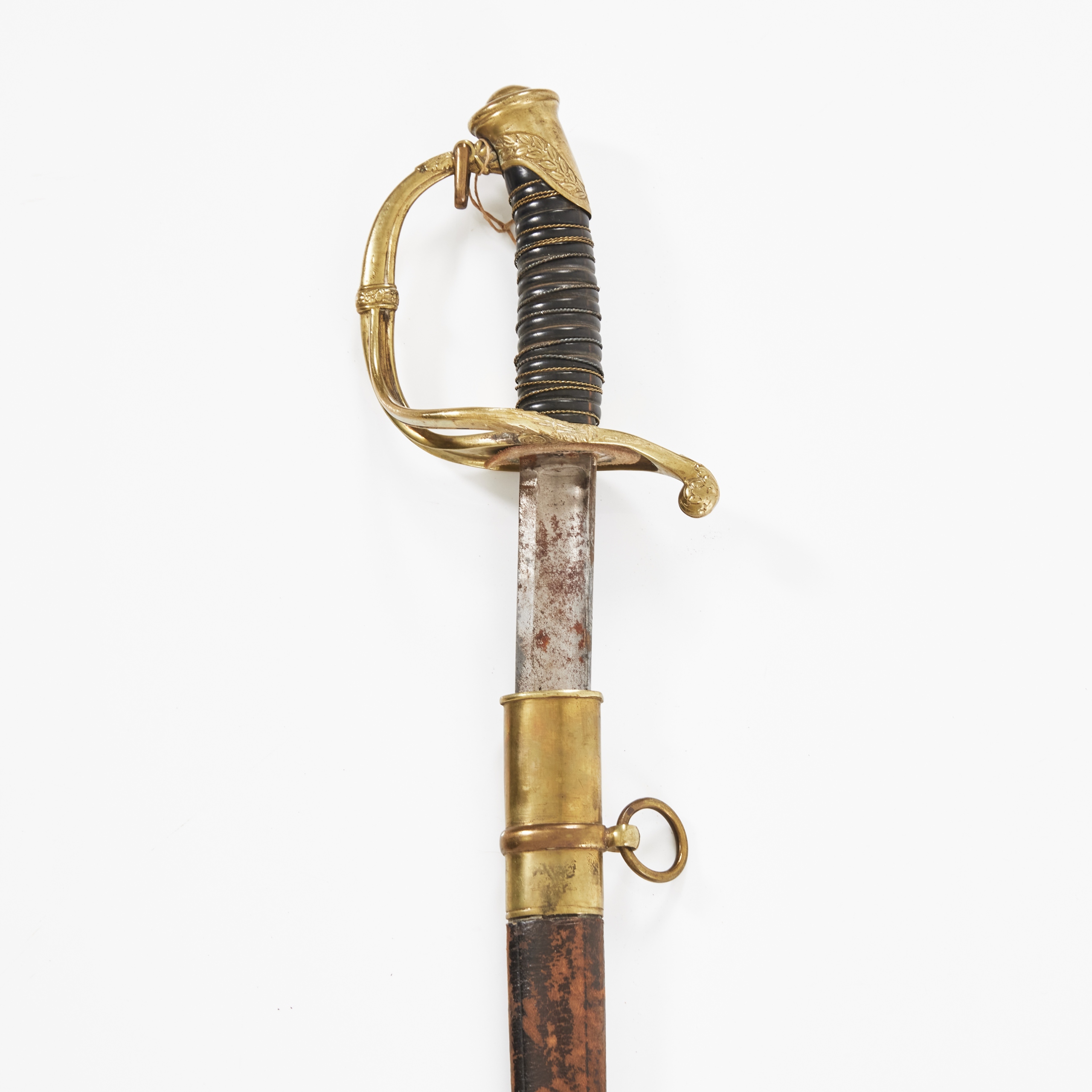 Сталь, латунь, дерево, кожа, латунная косичка; Общая длина во влагалище: 93 см,