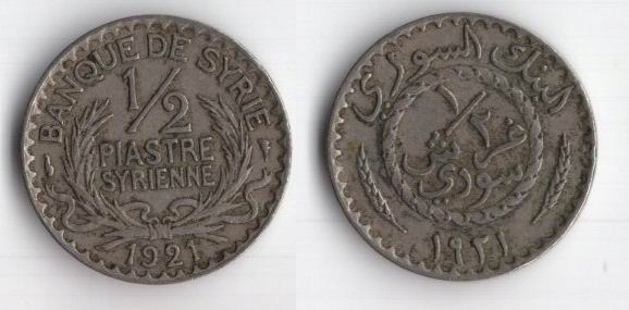 ФРАНЦУЗСКАЯ СИРИЯ 1921 ГОДА 1/2 ПИАСТРА
