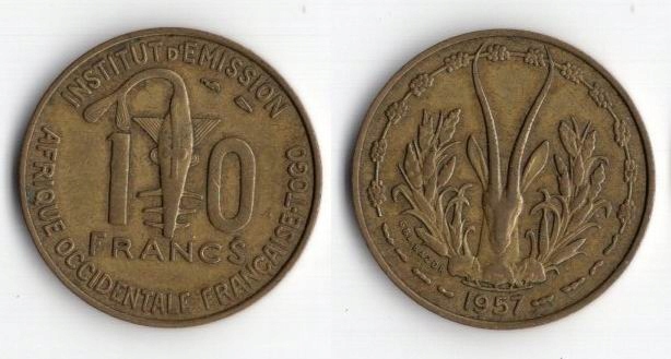 ФРАНЦУЗСКАЯ ЗАПАДНАЯ АФРИКА И ТОГО 1957 10 ФРАНЦУЗСКИХ