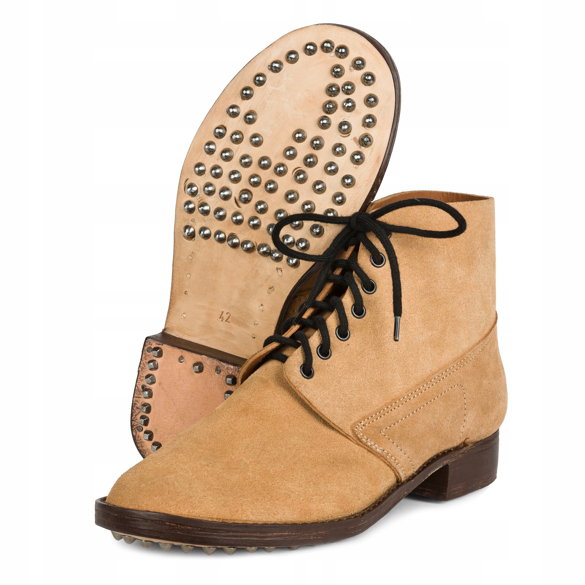 Идеальная копия французских армейских ботинок Brodequins Mle. 1912 г. Туфли из натуральной толстой кожи отечественного производства, кованые, с правильными гвоздями - круглыми на подошве и квадратными на пятке. Подошва с шипами. Однозначно рекомендуем - высочайшее качество продукции. Обратите внимание – из-за использования только натурального сырья обувь может незначительно отличаться по оттенку от представленной на фото и иметь незначительные дефекты кожи. Это нормальное явление при использовании любого натурального сырья.