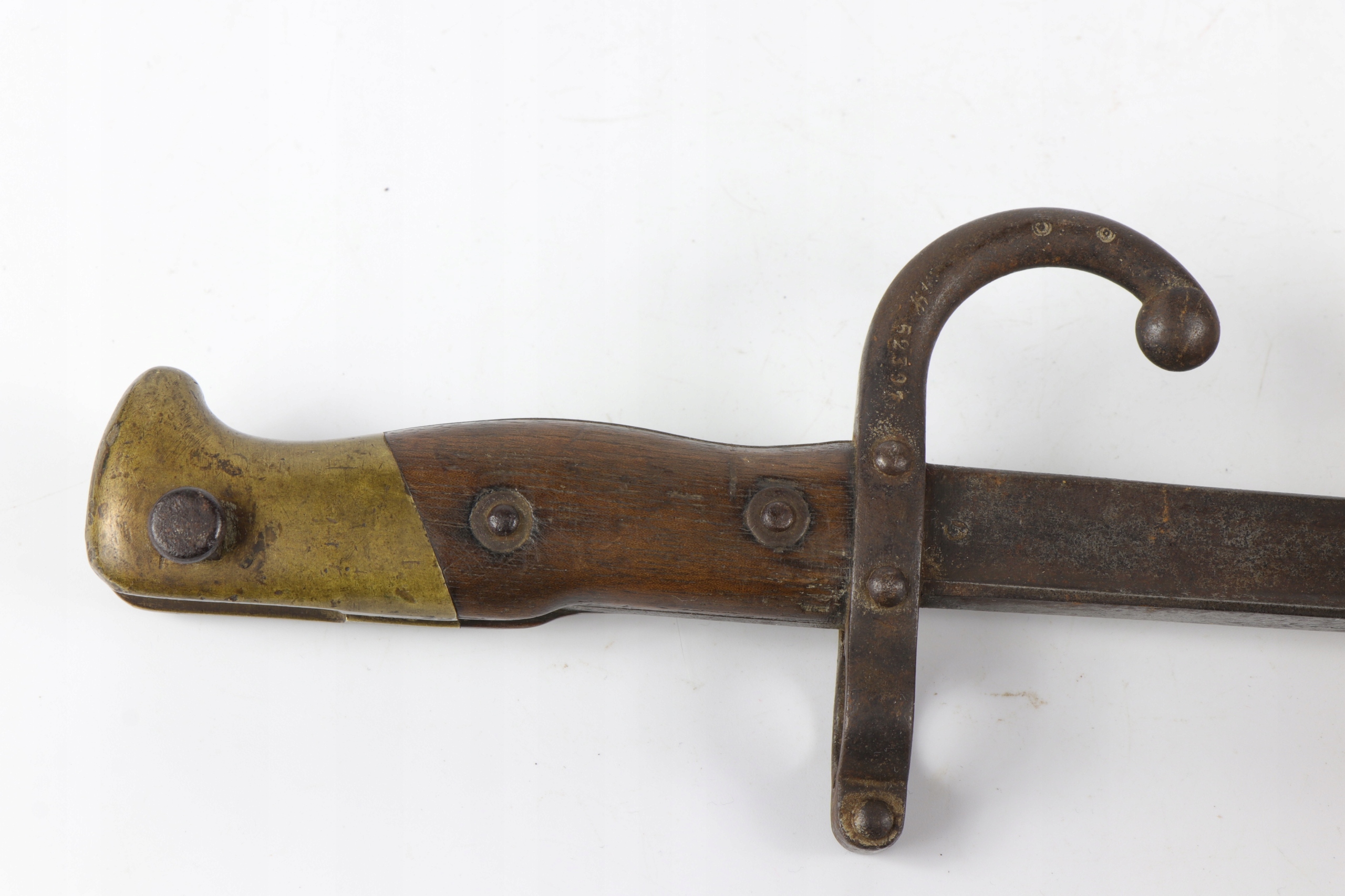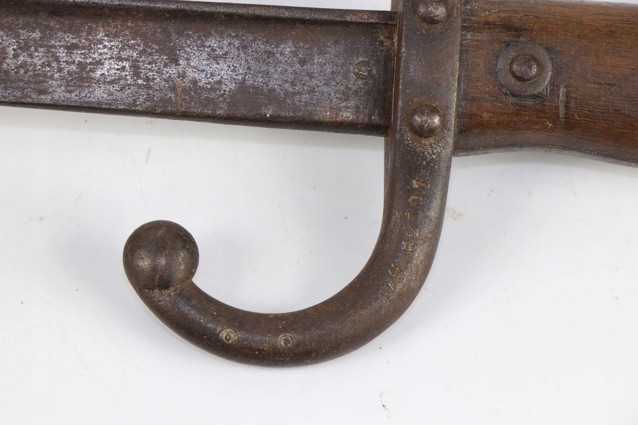 Французский штык образца 1874 года Gras. На тыльной стороне клинка штыка надпись дата 1881, на цевье номер 52397, на штыке другие отметки (?)