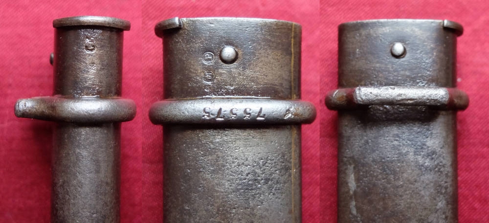 Ножны без отверстий, не помяты, имеют небольшие следы ударов в нижней части. Лезвие хорошо ложится в ножны, направляющая функциональна и держится очень крепко. Номер75575на язычке и круглые метки на входном отверстии.