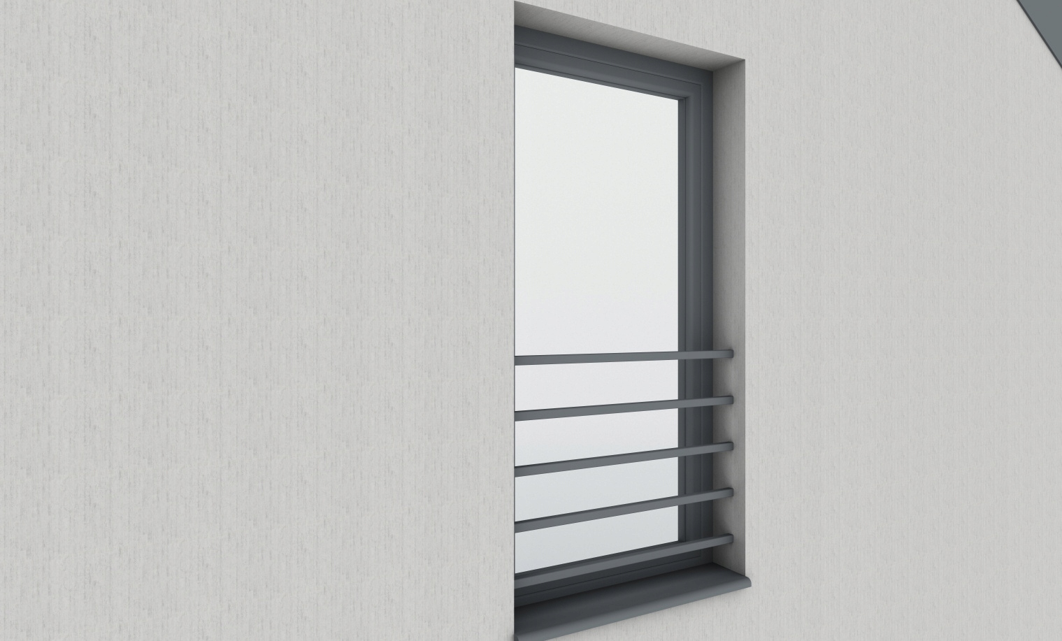 - Французская балюстрада адаптирована к сборке перед изоляцией толщиной 20 см (другой к порядку).