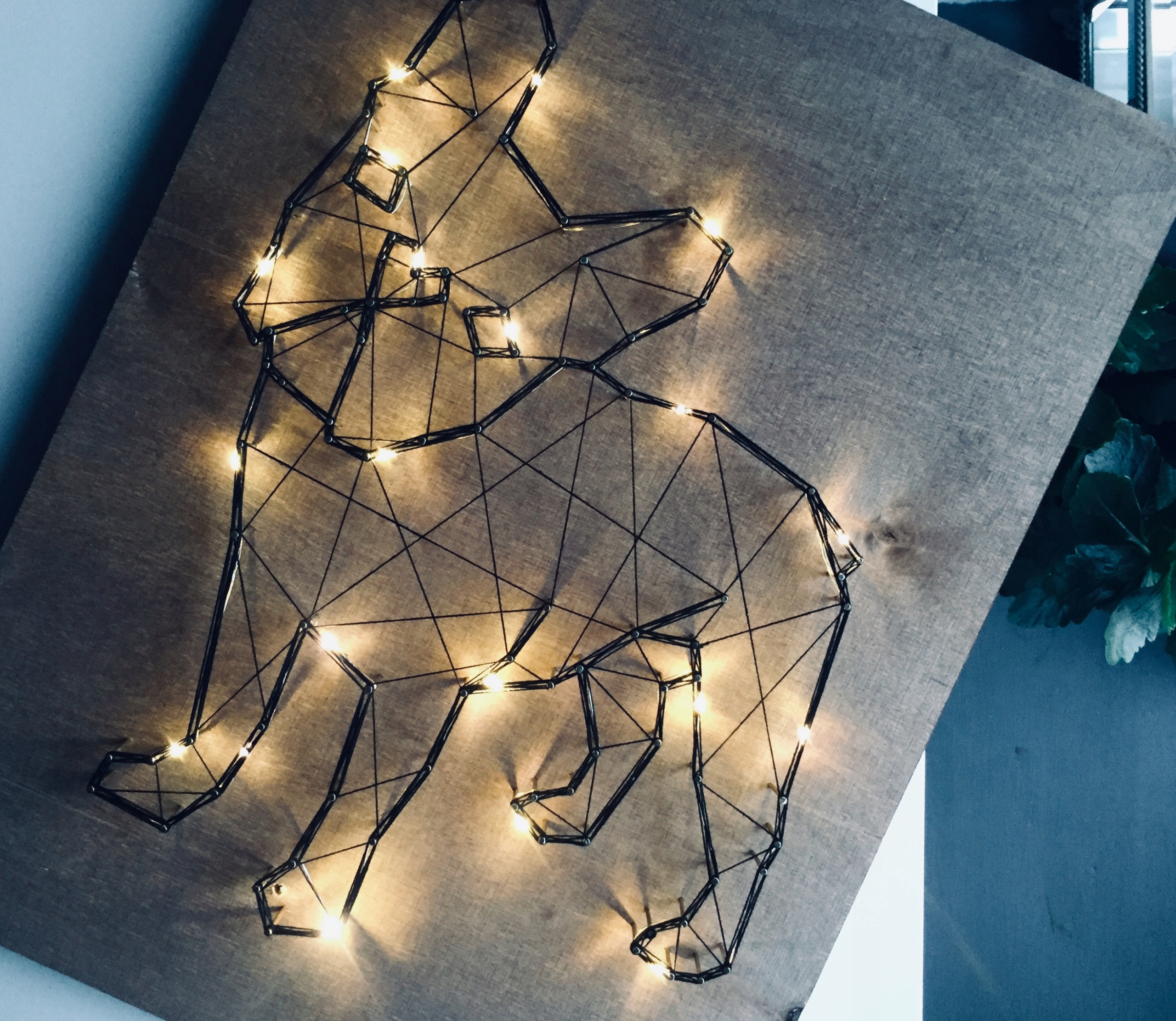 КРАСКА на деревянной доске, выполненная в технике Стринг-арт, со светодиодной подсветкой