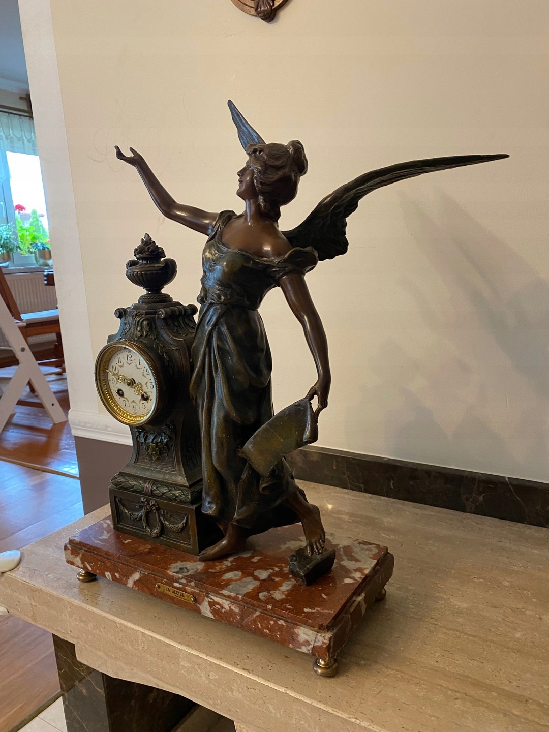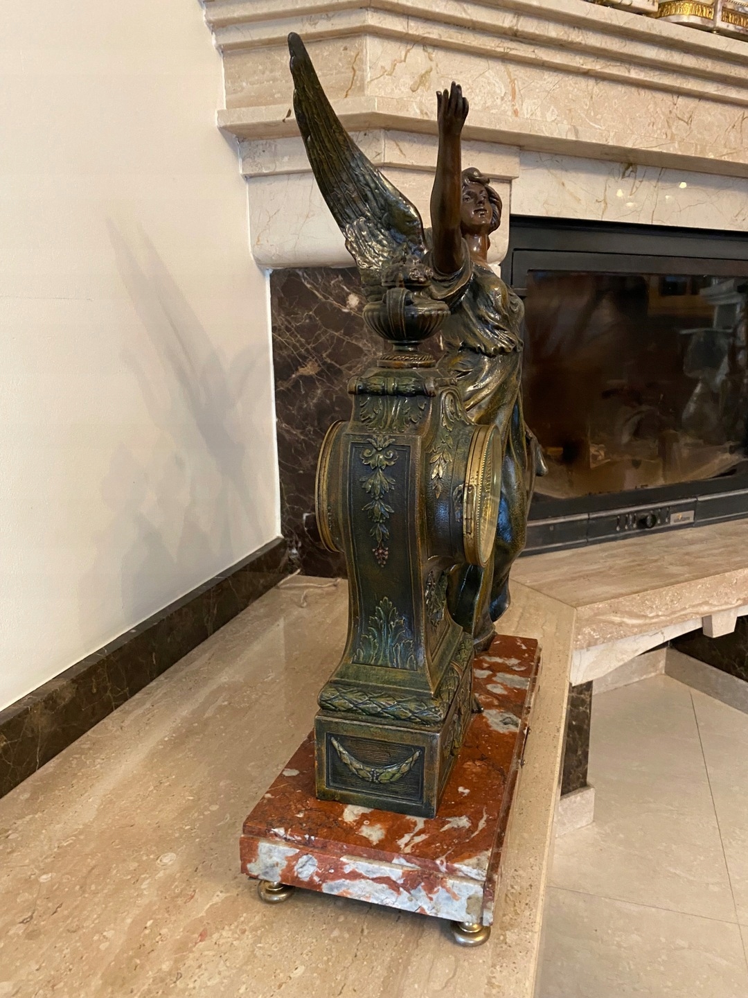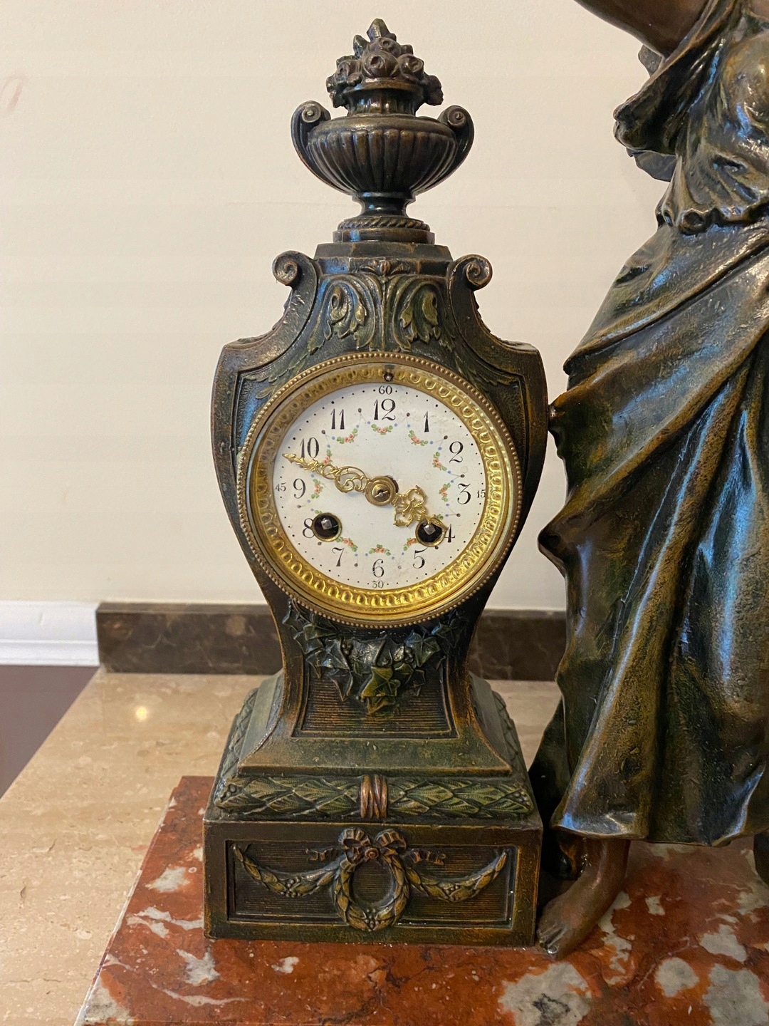 Часы с мраморным основанием и фигуркой из цинка.
