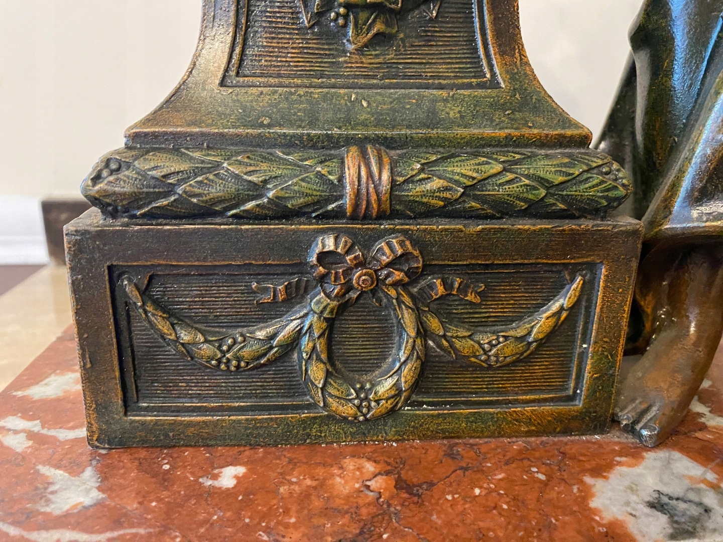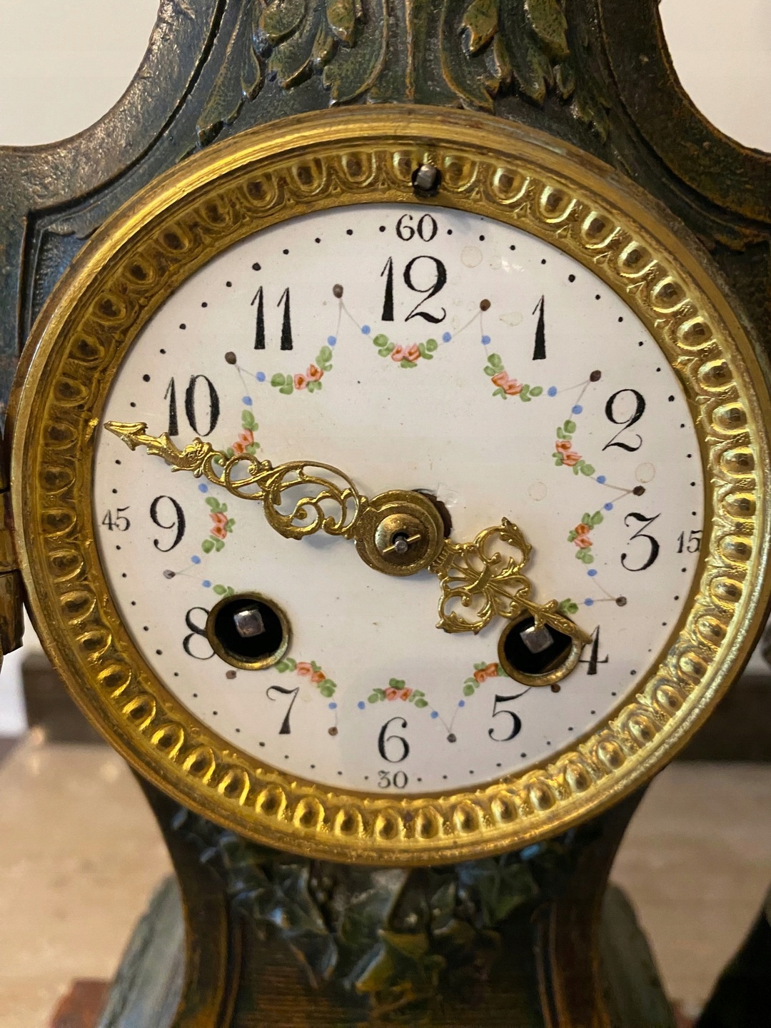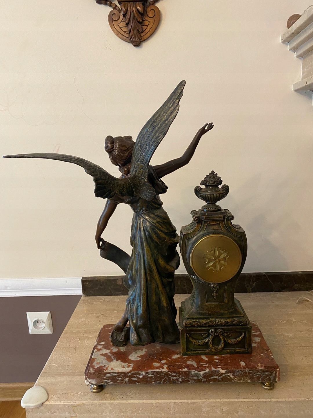 Часы с мраморным основанием и фигуркой из цинка.
