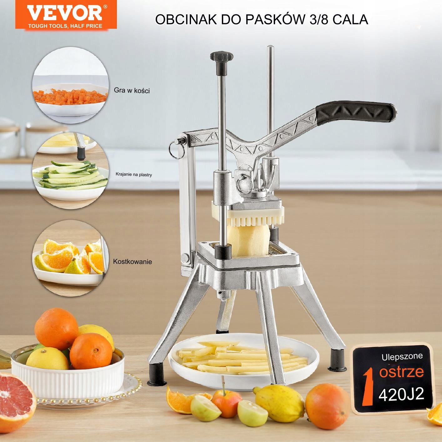 - ✅ Полное использование: идеально подходит для разрезания картофеля на картофель фри, лук, помидоры, морковь, огурцы, яблоки, груши и многие другие овощи и фрукты.