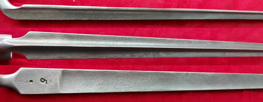Длина штыка 48,5см, длина втулки 6,6см, ширина клинка 22,5мм, толщина клинка 10,5мм, диаметр втулки 21,5/22мм.