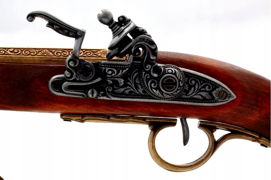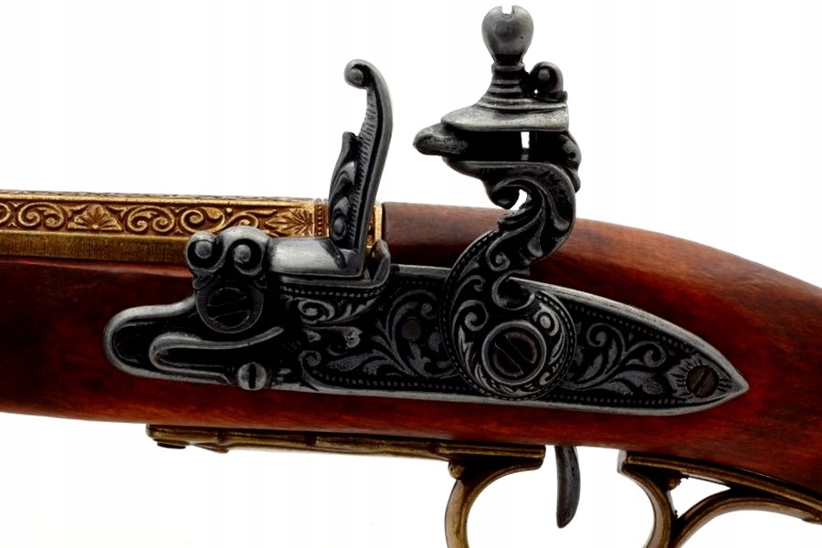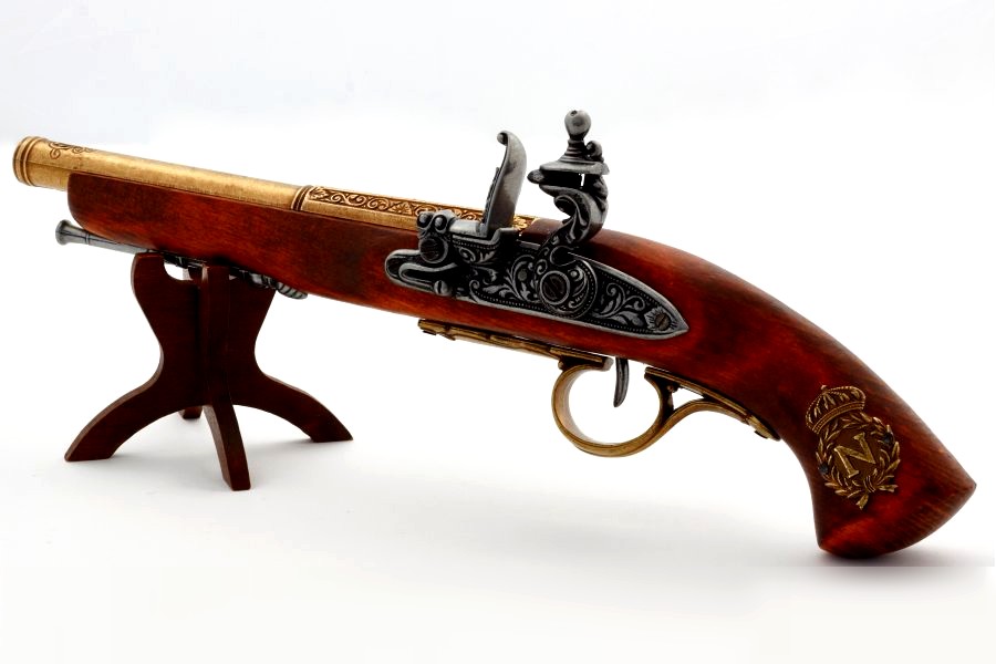 Представленный рок -пистолет - это новая копия оружия, используемой во Франции 19 -го века. h1>