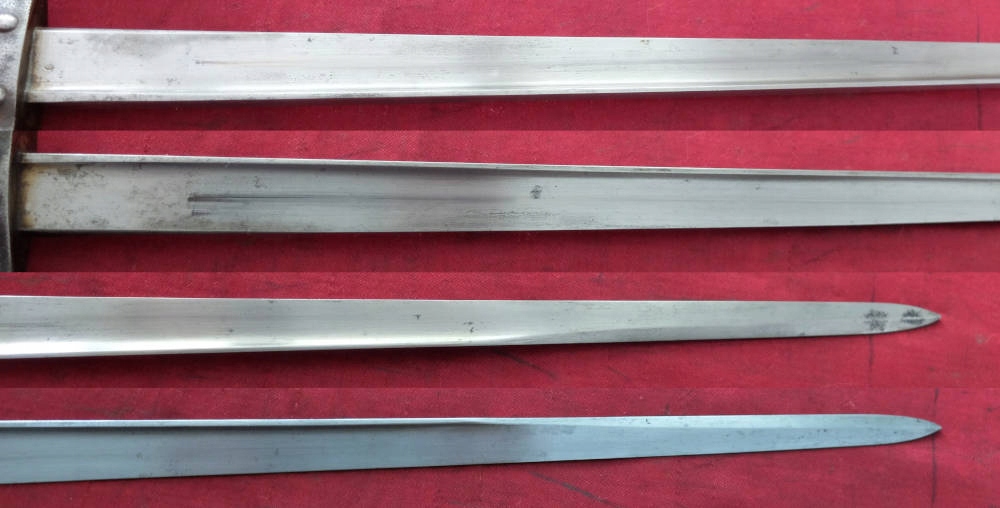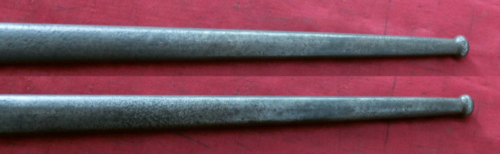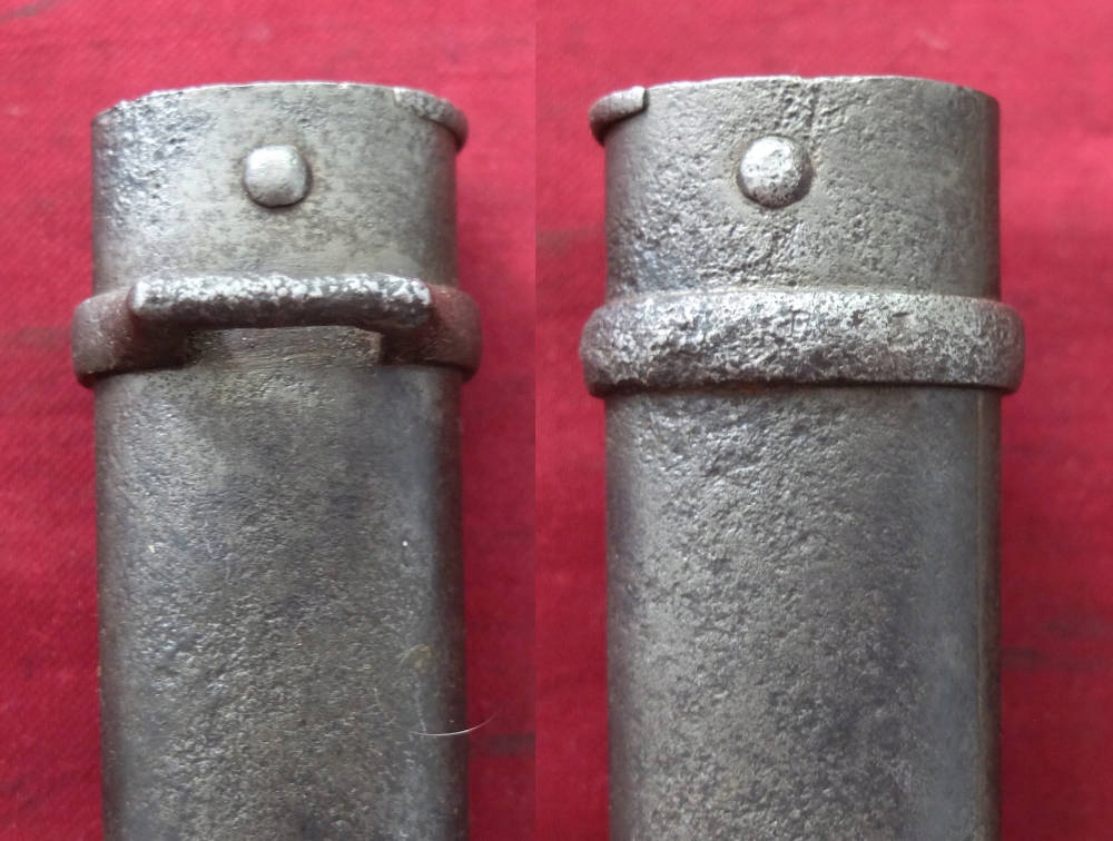 Экземпляр, видимый на фотографиях, очень хорошо сохранился. Лезвие не заточено, не заточено, очень хорошо сохранилось. На тыльной стороне клинка надпись, частное производство Paris Oudry, год производства 1880. На крестовине есть небольшая зернистость, но подписи видны. Среди прочего якорь (штык, предназначенный для ВМФ), номер 35288 (немного размытый) и мелкие подписи. Накладки на ручки деревянные и оригинальные. Байонетный замок работает.