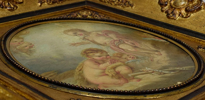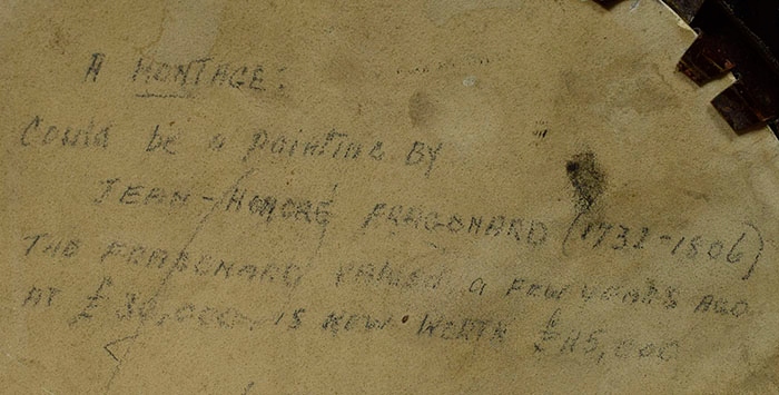 На реверсе надпись карандашом «Может быть написан Жаном-Оноре ФРАГОНАРОМ (1732-1806) (... )"