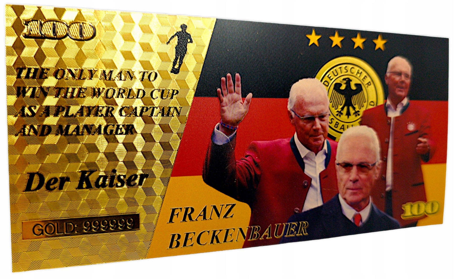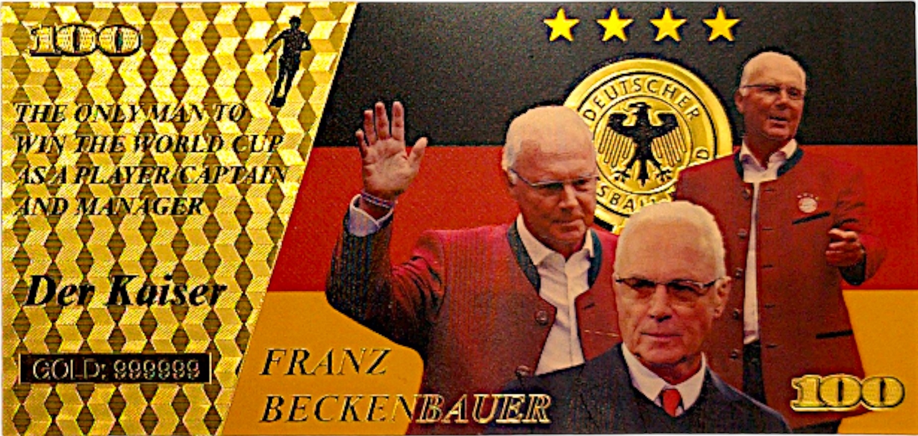 Красивая позолоченная банкнота с изображением Франца Беккенбауэра.