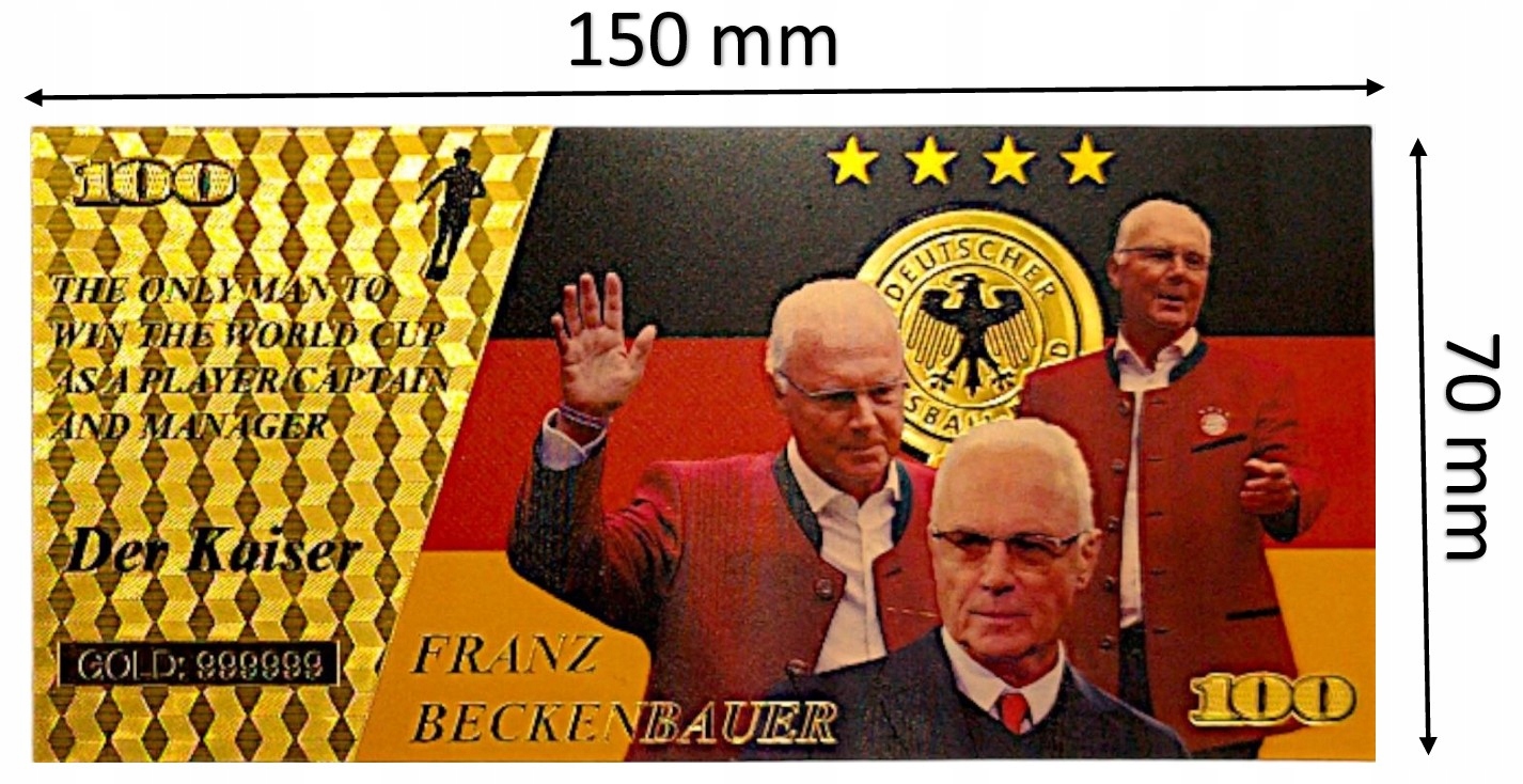 .Эта эксклюзивная банкнота — не только символ престижа, но и дань уважения одной из величайших фигур в истории футбола. Франц Беккенбауэр, также известный как «Кайзер», — это спортивная икона, которую должен иметь в своей коллекции каждый футбольный болельщик.