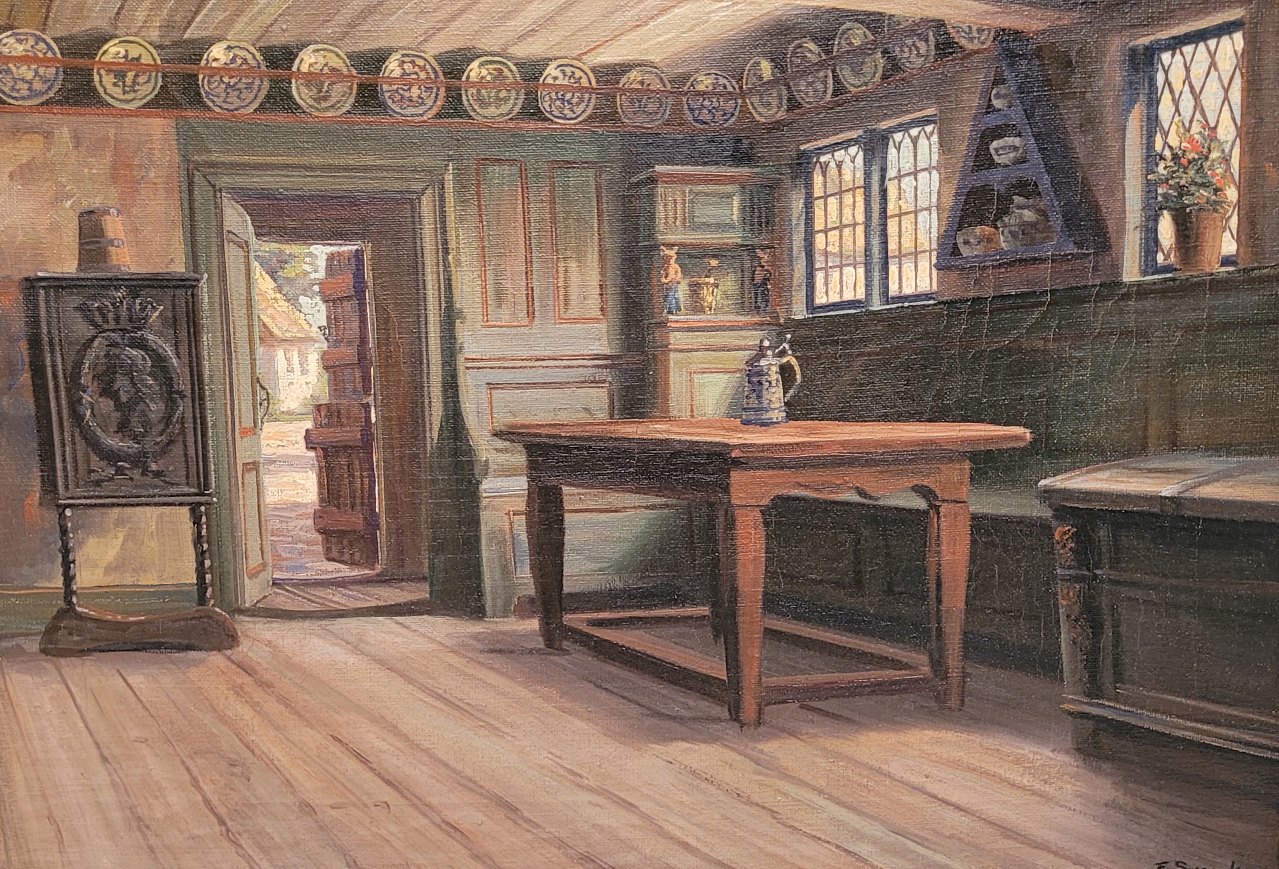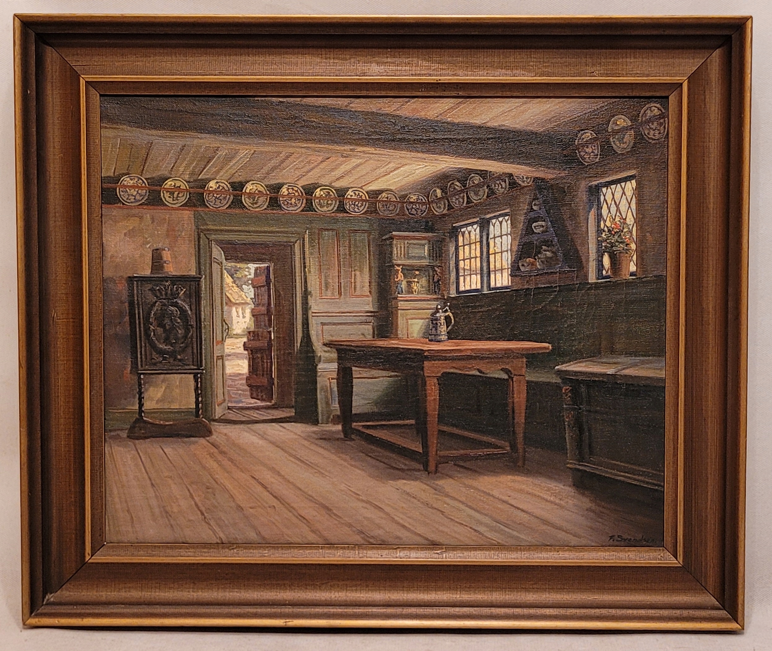 ФРЕДЕРИК ВИЛЬГЕЛЬМ СВЕНДСЕН (1885-1975) - «СТАРЫЙ ИНТЕРЬЕР», картина маслом.