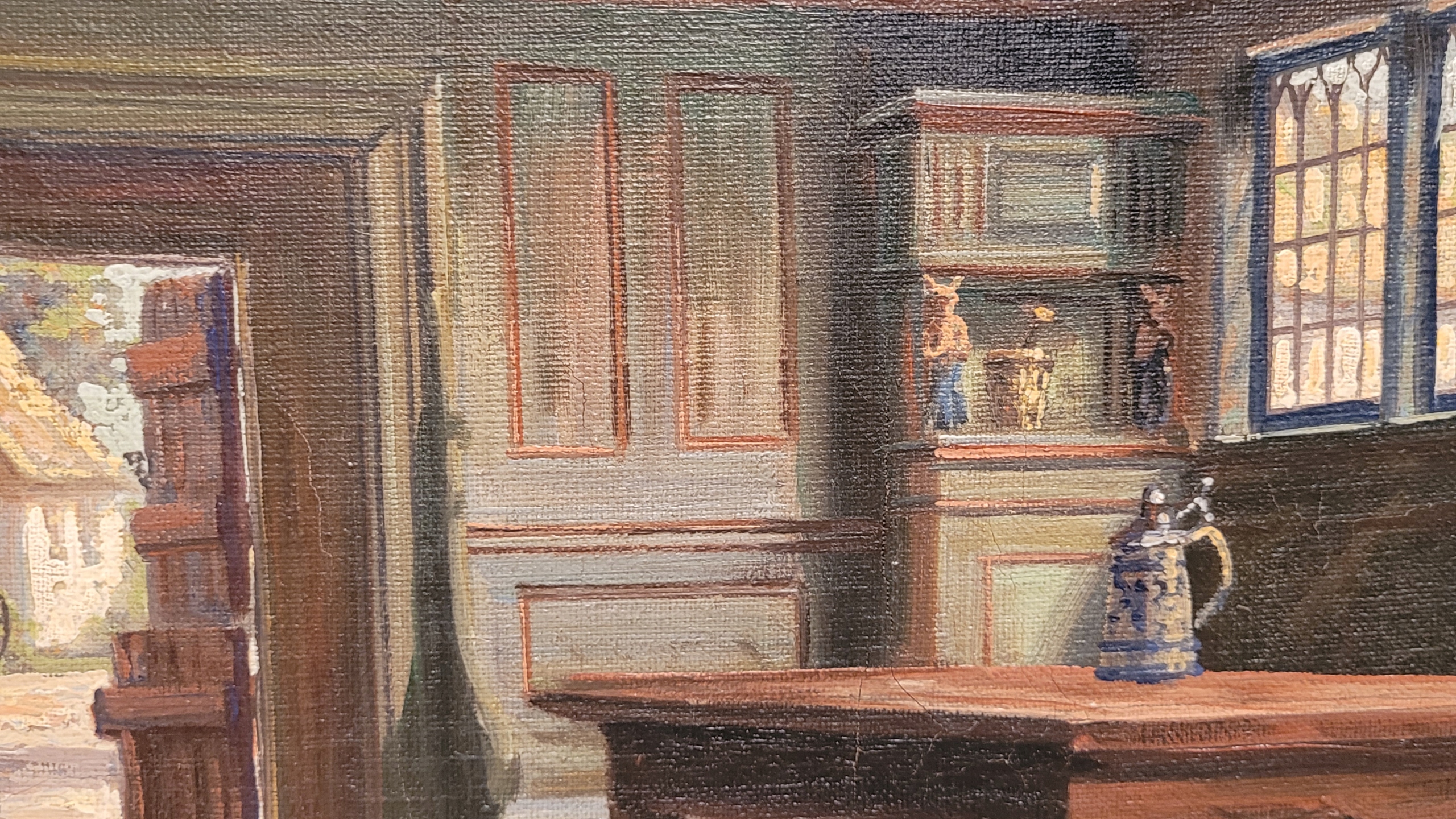 Предмет продажи - красивая, старинная картина маслом "СТАРЫЙ ИНТЕРЬЕР".