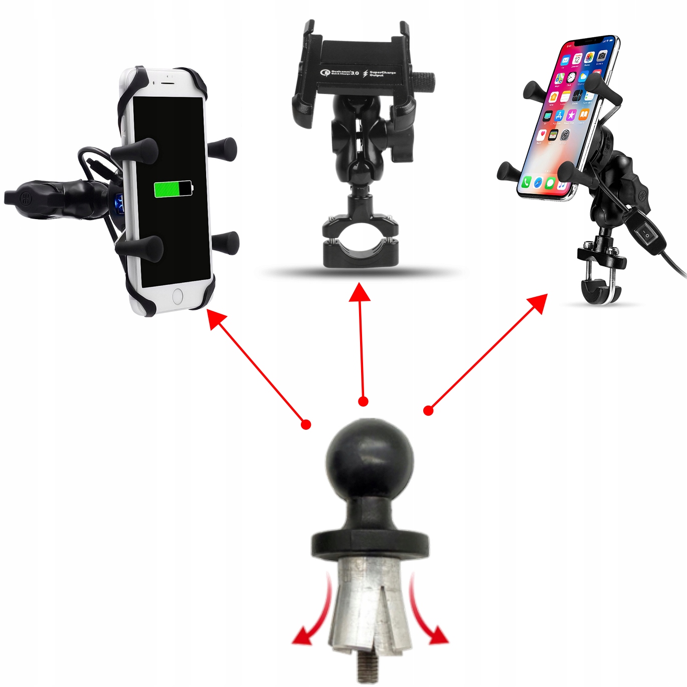 Голова имеет диаметр 25 мм, то есть она совместима с большинством телефонных креплений, доступных на рынке, камеры и т. Д.