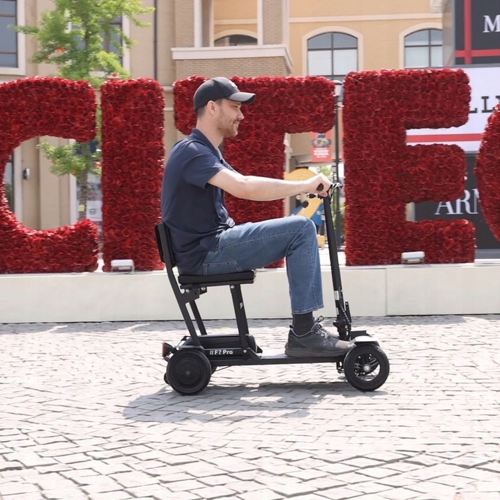 Freejoyer F7 Pro имеет компактные размеры 100 x 54 x 91 см и всего 100 x 54 x 36 см в сложенном виде. Благодаря функциям и функциям весом 23 кг его легко носить с собой, он подходит в качестве мобильного электромобиля для пожилых людей.