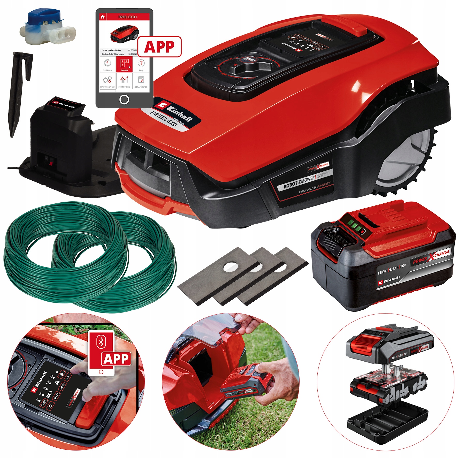 Принадлежит к семейству, насчитывающему более 250 продуктов, работающих в системе Power X-Change с использованием передовой литий-ионной технологии от Einhell. Каждый аккумулятор серии Power X-Change можно комбинировать с любым устройством Power X-Change без ограничений. FREELEXO управляется через приложение по Bluetooth, а настройки косящего робота можно настроить под индивидуальные требования. Кроме того, он имеет интуитивно понятную клавиатуру. С помощью приложения вы сможете точно запрограммировать время работы косилки Einhell FREELEXO на каждый конкретный день. Для защиты от кражи робот-косилка оснащена ПИН-кодом и предупредительным сигналом. При необходимости он автоматически возвращается на зарядную станцию для подзарядки и снова приступает к работе.