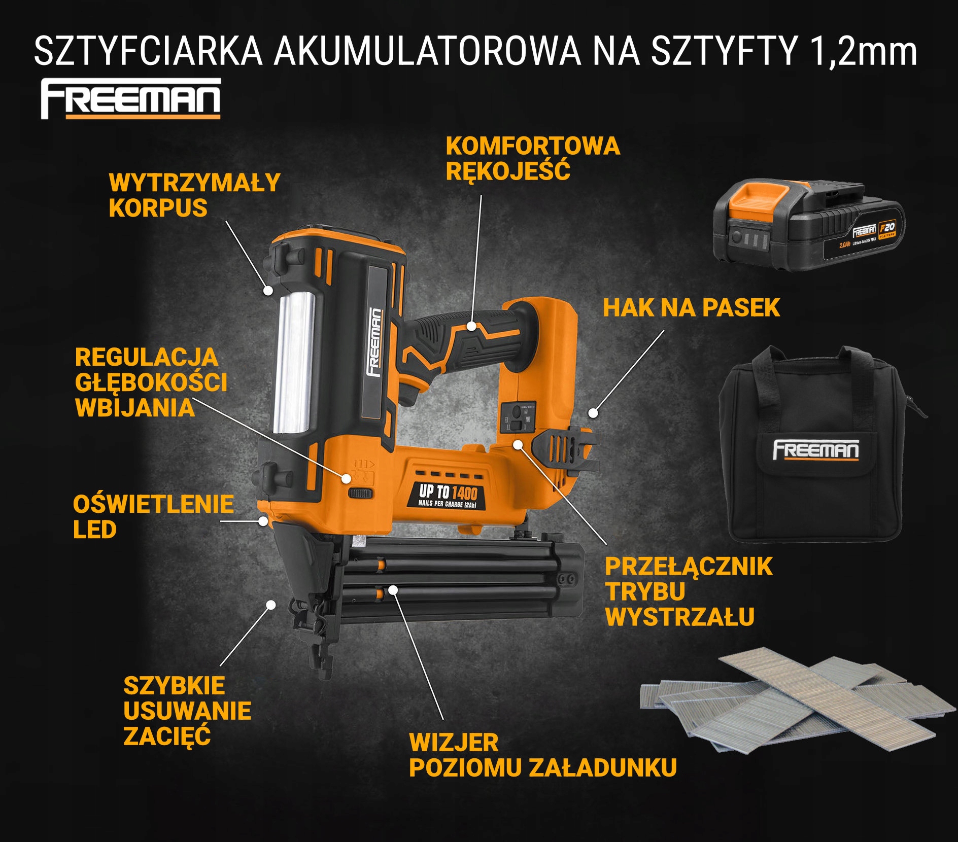Freeman LDF50 Wireless 18GA NAIL, 20 В для палочек/гвоздей с диаметром 1,2/15-50 мм (тип SK300)