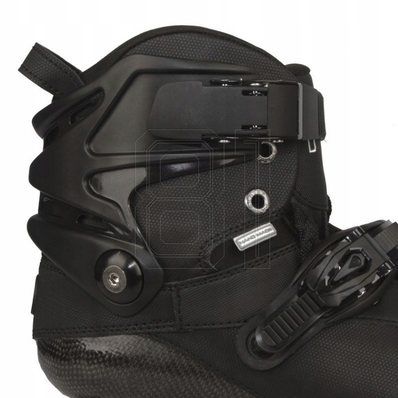 - Обувь: оболочка из углерода и стеклянных волокон. Это было сделано таким образом, чтобы лучше всего соответствовать анатомии пользователя, буквально иммобилизации ноги внутри. После правильного и прикрепления этих роликов мы получаем степень контроля и точность движения движений каким -либо образом, что не уступает более дорогим моделям. Под ногой есть стелька, которая оказывает поддержку дуги ноги, благодаря которой поездка более удобна и переводит энергию подталкивания на более эффективные колеса. Обувь обрезана прочным материалом, а точки, перенесшие самый быстрый износ, то есть стороны (снаружи) и наконечник, дополнительно защищены истирающими пластиковыми крышками.