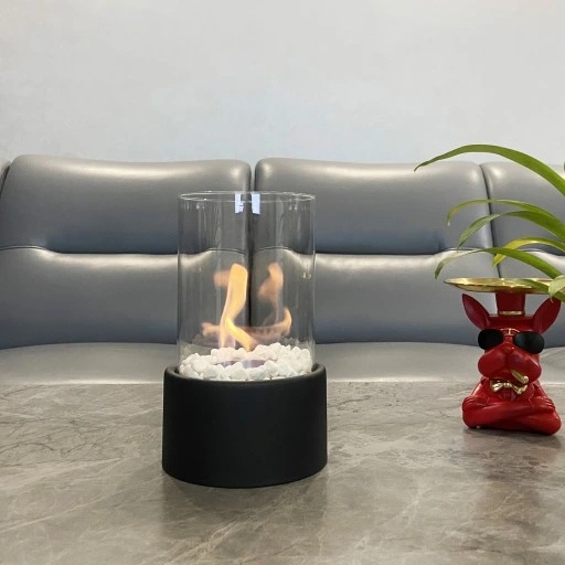 Этот элегантный столовый камин имеет элегантное блэк -металлическое основание, съемное цилиндрическое стекло, камеру сгорания нержавеющей стали и подсвечник. Вы можете курить не только алкоголь, но и обогреватели и свечи. Он полностью лишен вентиляции и простой в установке и использовании, как только вы удалите из коробки