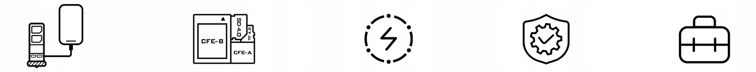 - ✔️ Совместимость с двумя картами: одновременная поддержка карт CF Express A/B, SD и TF (микро SD), что позволяет быстро и удобно передавать данные.