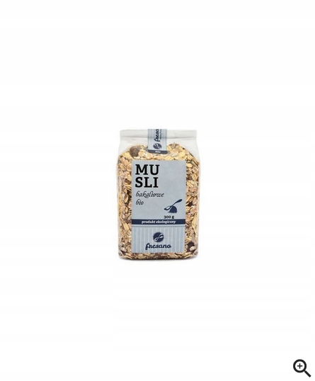 хлопья овсяные толстые*, хлопья пшеничные*, изюм изюм*, орехи кешью*, фундук*, очищенные европейские семечки*, коричневый лен*, сушеные ягоды годжи* (*сертифицированный экологический ингредиент).