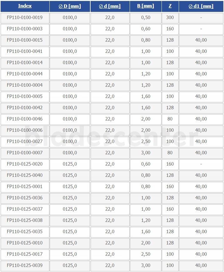 - все стандартные дисковые пилы имеют схождения боковых поверхностей, заданные в заданных диаметрах, что предотвращает заедание инструментов в процессе резки.