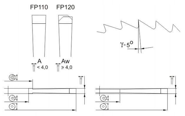 - треугольные зубья А и Aw также используются для нарезания канавок небольшой глубины.