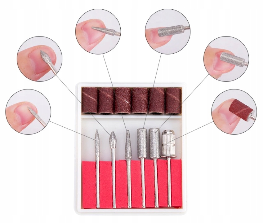 ✅В наборе имеются фрезерные насадки, которые удовлетворят все ваши потребности в маникюре и педикюре. Благодаря разным размерам и формам насадок можно выполнять широкий спектр обработок.