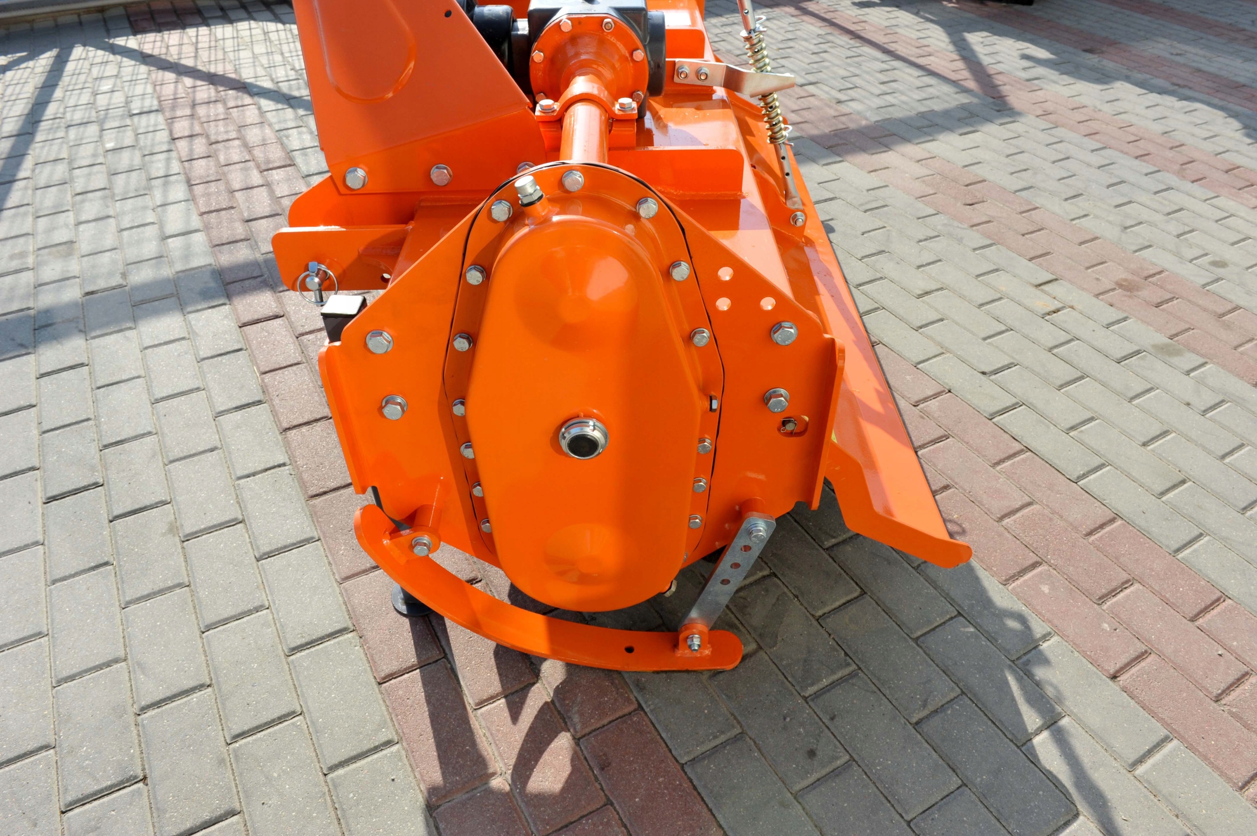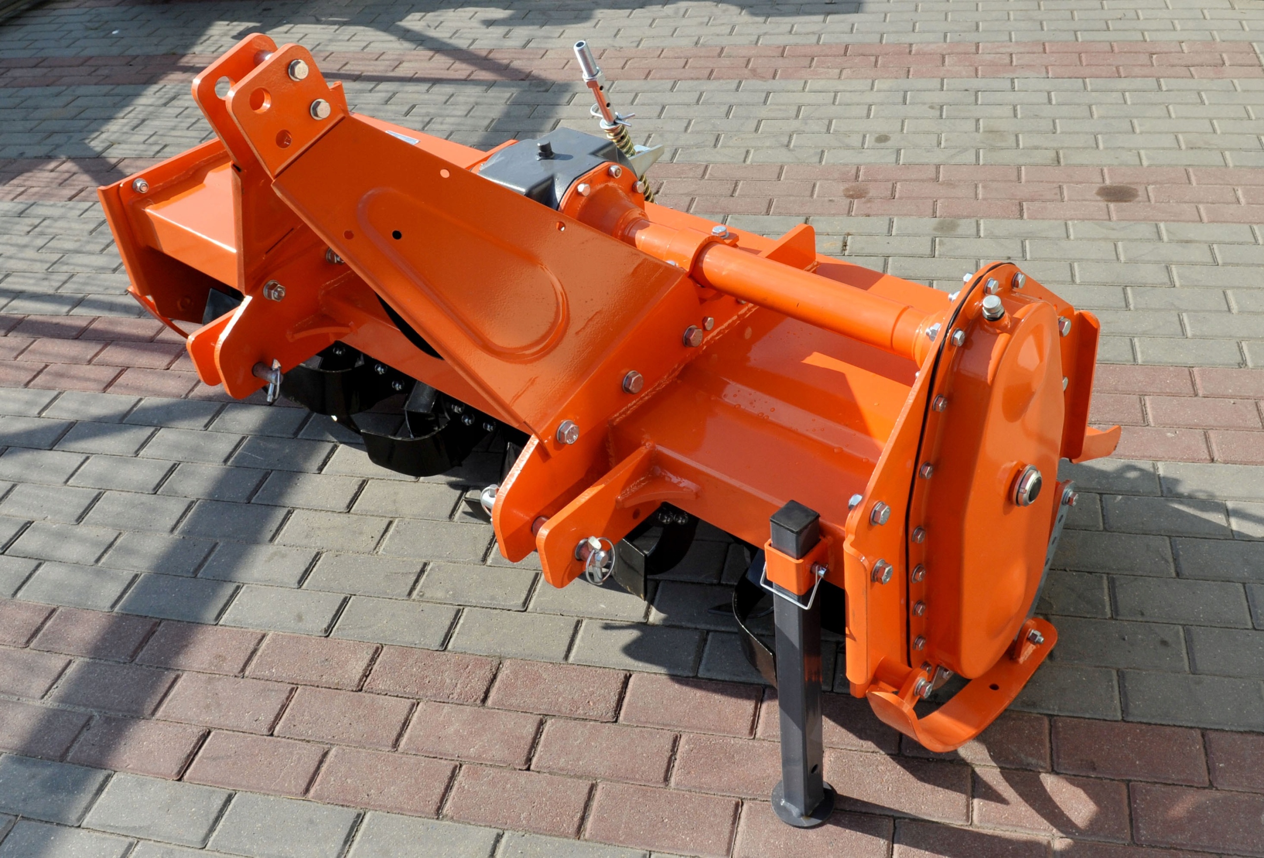 Мотокультиватор крепится к трактору на 3-точечной подвеске Cat I. Рабочими органами являются ножи, смонтированные по 6 шт. на каждой секции. Привод на рабочий вал передается с помощью цепи, оснащенной натяжителем.