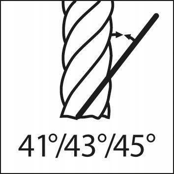 Фреза с хвостовиком, цельная твердосплавная. Скорость резки ок. на 50% выше, чем в случае инструментов без покрытия. Возможна сухая обработка. Применение: для периферийного фрезерования и универсальной обработки. Для чернового, пазового и чистового фрезерования. Чрезвычайно плавный ход благодаря неравномерному повороту канавок на 41°/43°/45°, что обеспечивает хорошее качество поверхности заготовки во время чистовой обработки. При фрезеровании пазов и черновом фрезеровании подача может достигать до 60%. Гораздо большая долговечность по сравнению с обычными инструментами. Увеличенные стружечные камеры 3-зубых фрез позволяют использовать инструмент даже на очень большой глубине фрезерования.