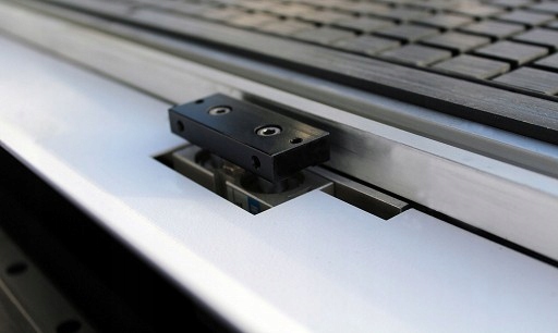 Рабочий стол станка выполнен по гибридной технологии – он имеет вакуумные секции и подразделы, обеспечивающие автоматический, неинвазивный зажим обрабатываемого материала, а также Т-образные пазы, обеспечивающие ручной зажим.