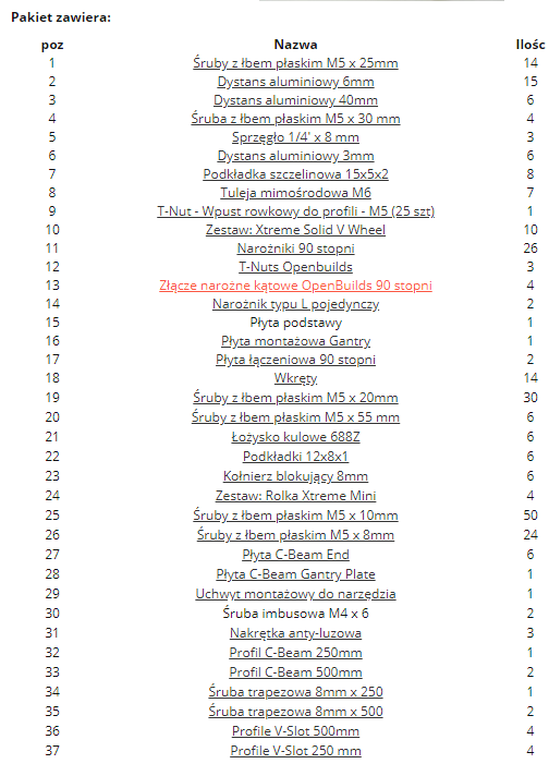 Frezarka CNC C-Beam OpenBuilds zestaw części DIY