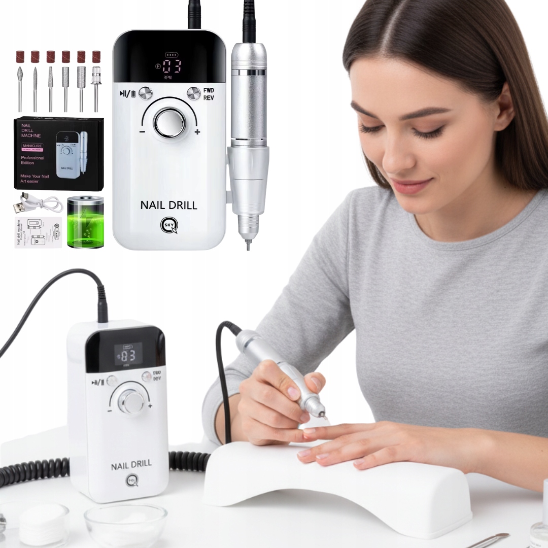 Профессиональная сверла для ногтей V6 с бесщеточным двигателем, регулировкой скорости до 45 000 об/мин, интеллектуальным ЖК-экраном и эффективным аккумулятором обеспечивает низкий нагрев, бесшумную работу и полный контроль во время маникюра и педикюра. Идеально подходит для геля, акрила, пудры, кутикулы и точной подготовки ногтей.