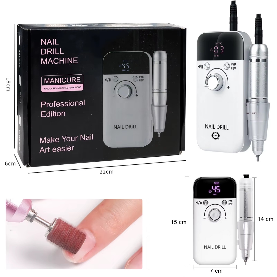 Профессиональная сверла для ногтей V6 с бесщеточным двигателем, регулировкой скорости до 45 000 об/мин, интеллектуальным ЖК-экраном и эффективным аккумулятором обеспечивает низкий нагрев, бесшумную работу и полный контроль во время маникюра и педикюра. Идеально подходит для геля, акрила, пудры, кутикулы и точной подготовки ногтей.