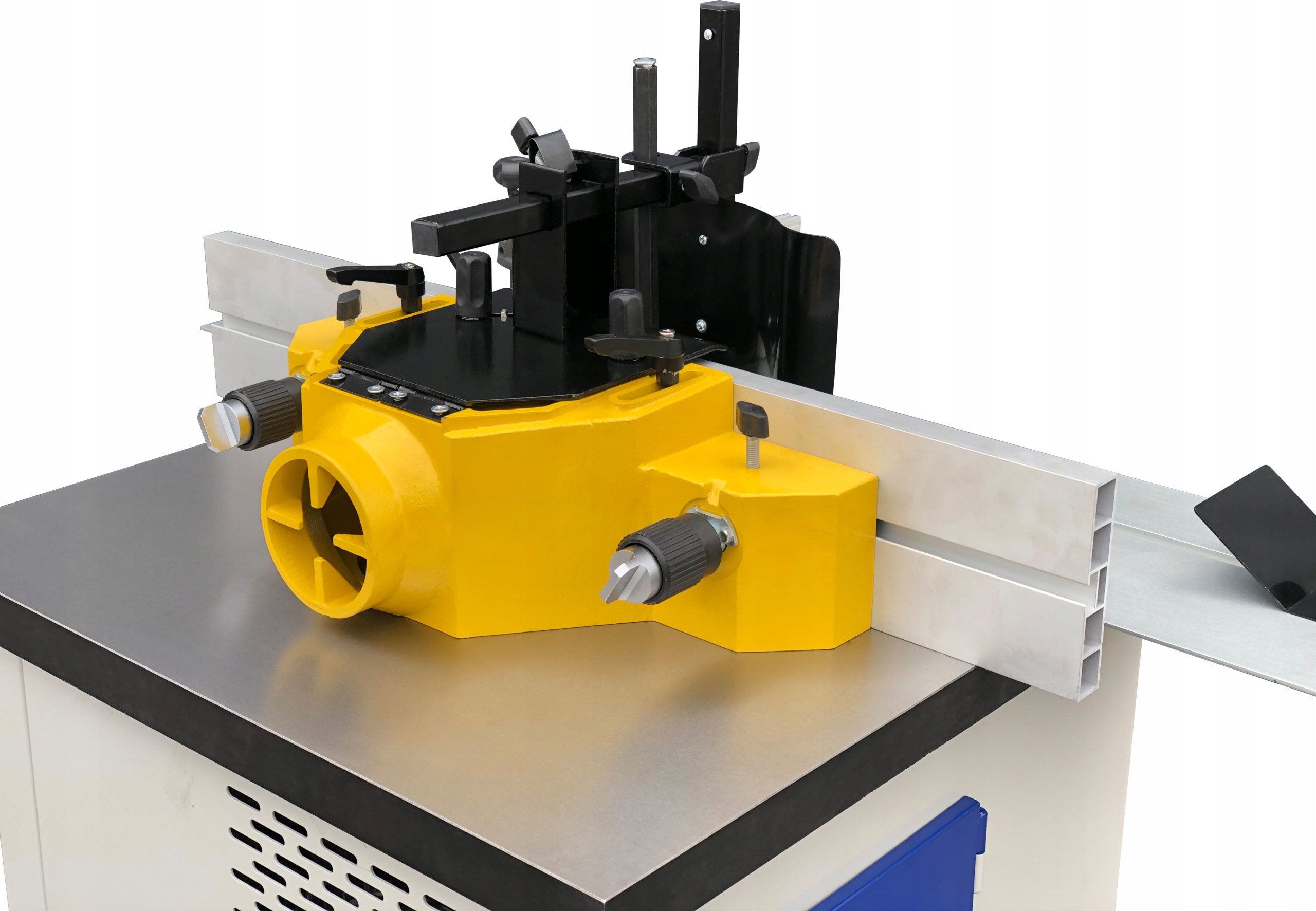 Станок имеет ряд удобств и регулируемых направляющих, повышающих точность работы. Механизмы, удерживающие заготовку, расположены в верхней части крышки шпинделя.