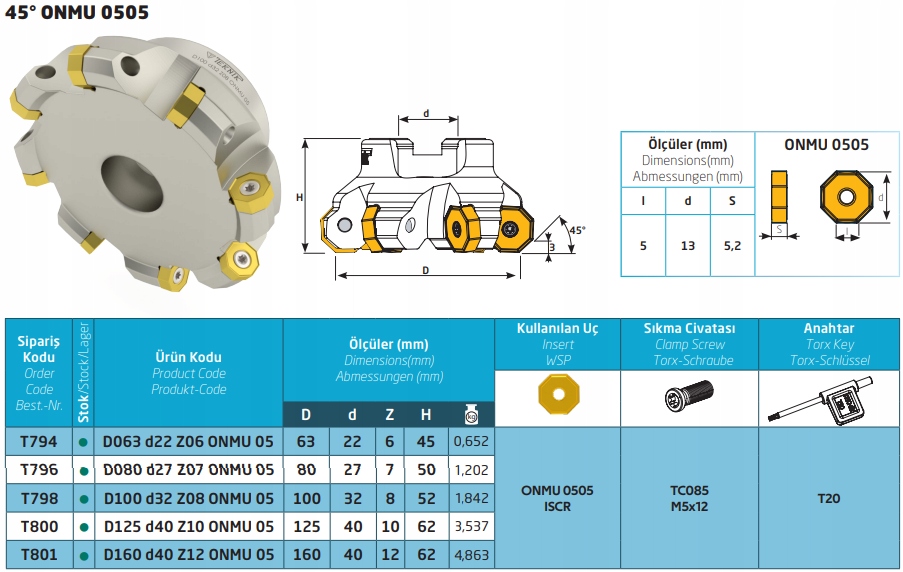Высекающая головка 45 ° FI 80x27 Z7 на ONM 0505 T796 TEKNIK