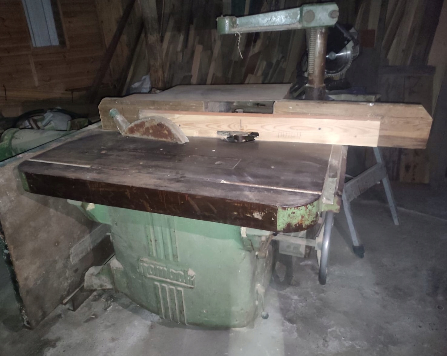 Станок имеет: пилу, фрезу станок, дрель