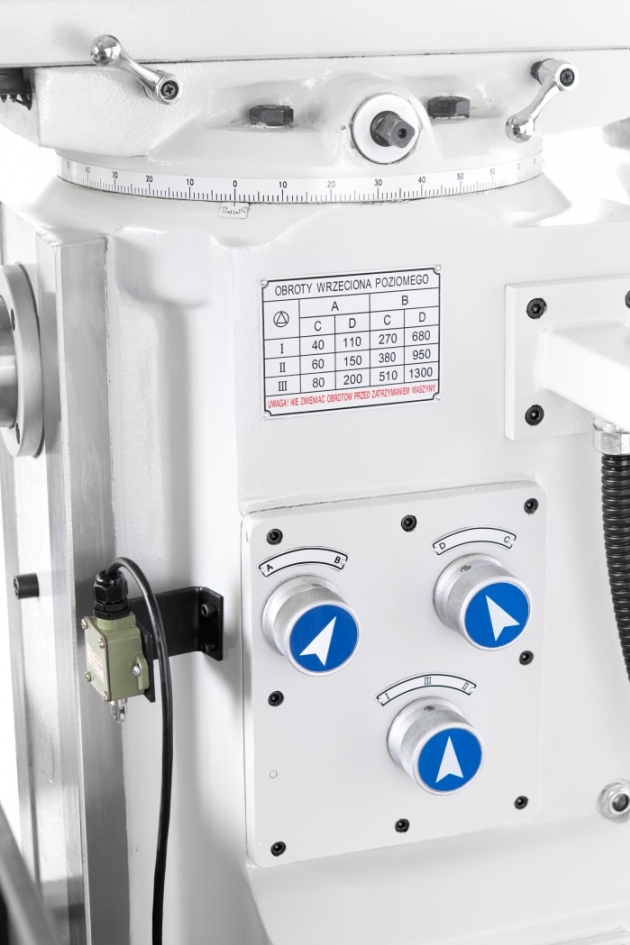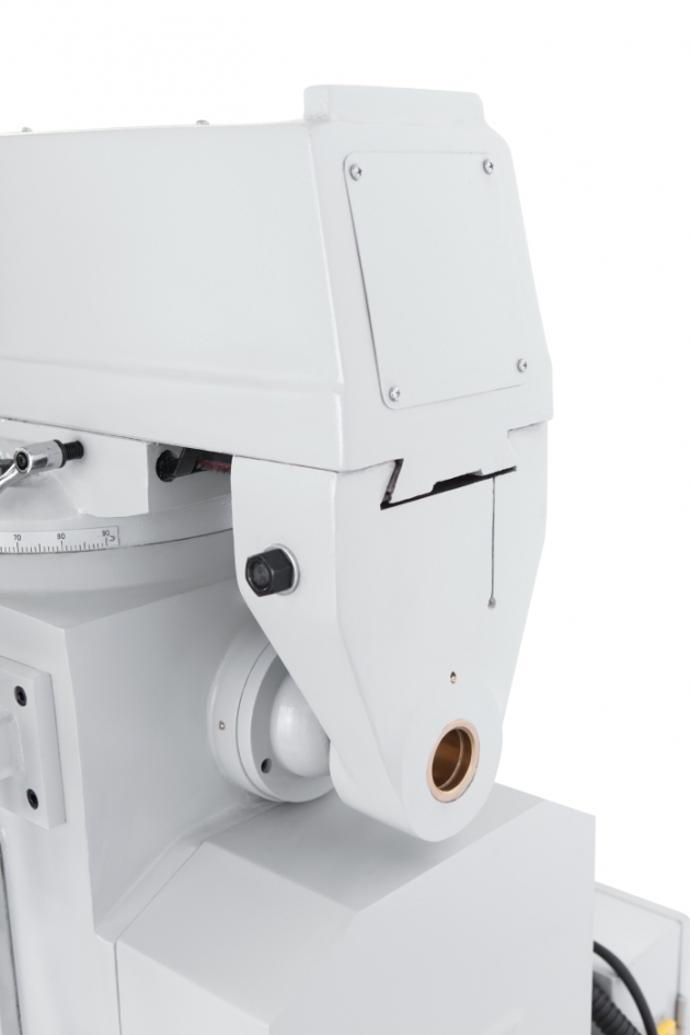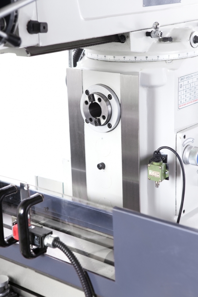 фрезерный станок имеет вертикальную головку и горизонтальный шпиндель.