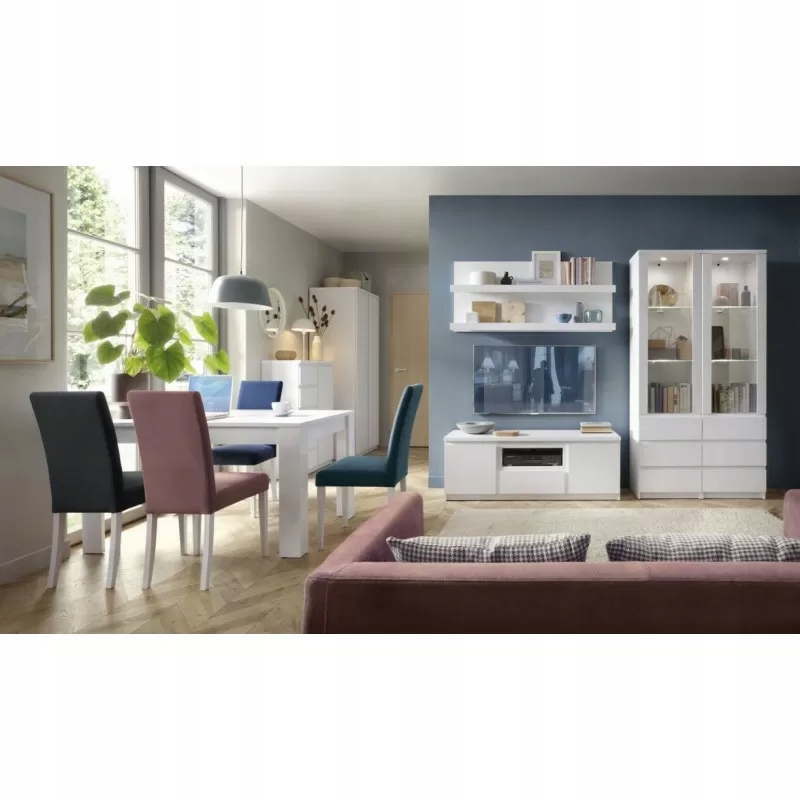 - Витрина имеет целых три вместительных ящика с возможностью полного выдвижения, а использованная в них система без ручек позволяет комфортно пользоваться мебелью.