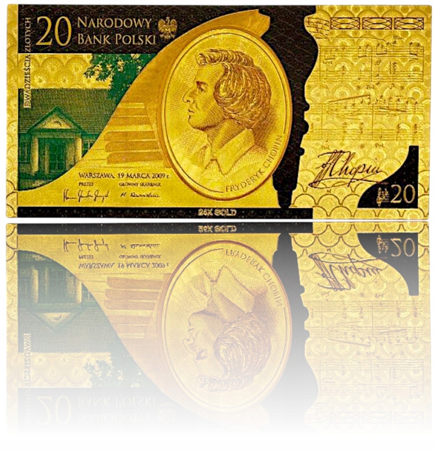 Необычная коллекционная позолоченная банкнота из ПВХ «ФРИДЕРИК ШОПЕН» ГАДЖЕТ