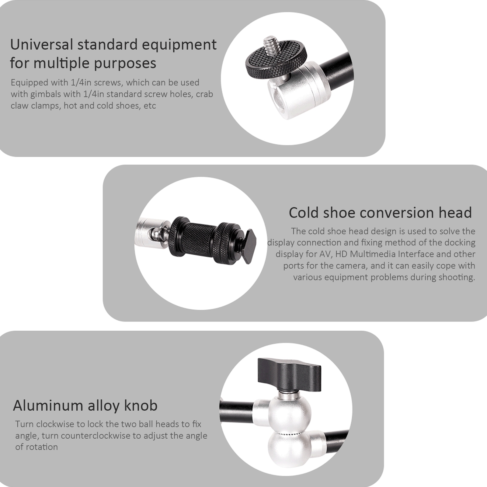 3. Гака из алюминиевого сплава: поверните по часовой стрелке, чтобы зафиксировать две шаровые головки, чтобы зафиксировать угол, поверните против часовой стрелки, чтобы отрегулировать угол вращения.